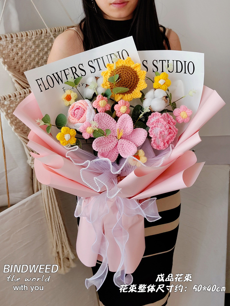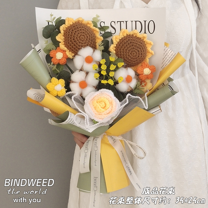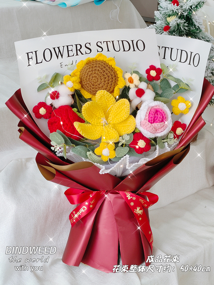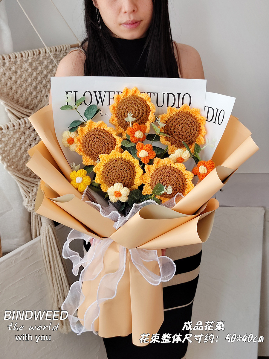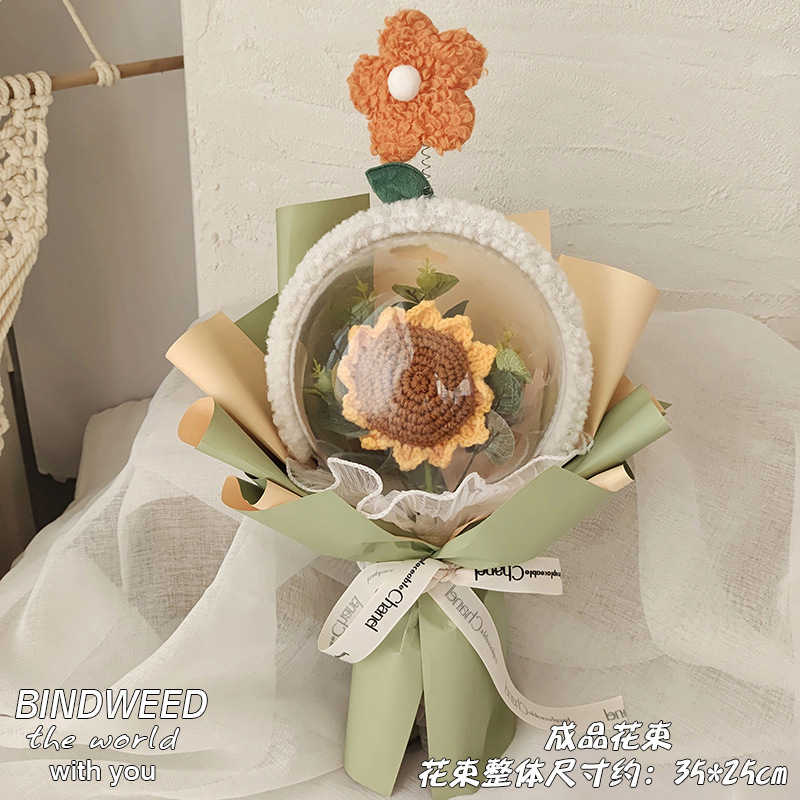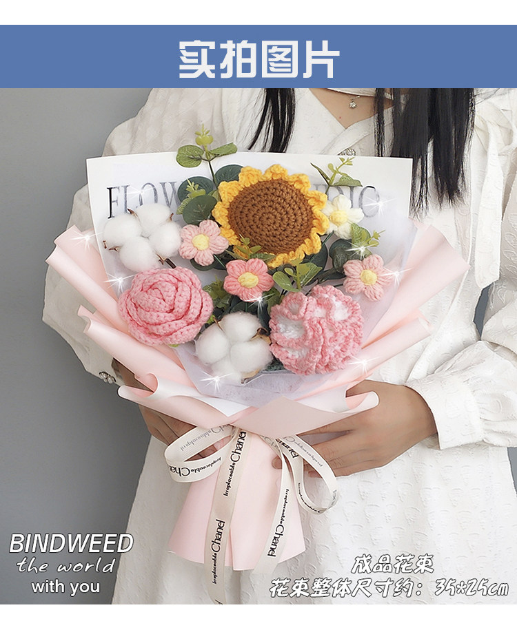 2023新款编织针织向日葵玫瑰康乃馨毕业花束毛线花生日母亲节送妈
