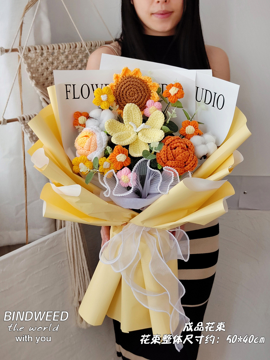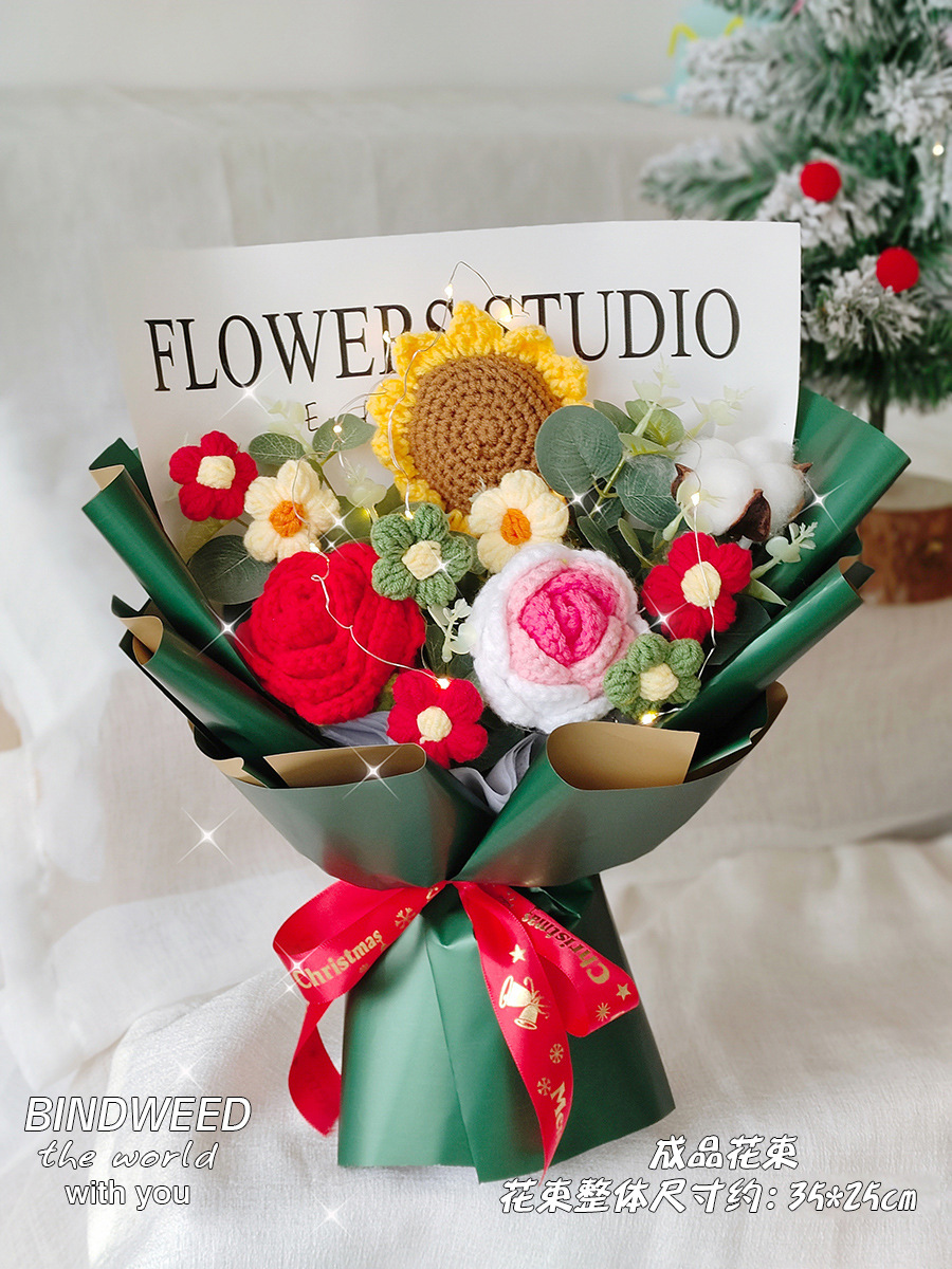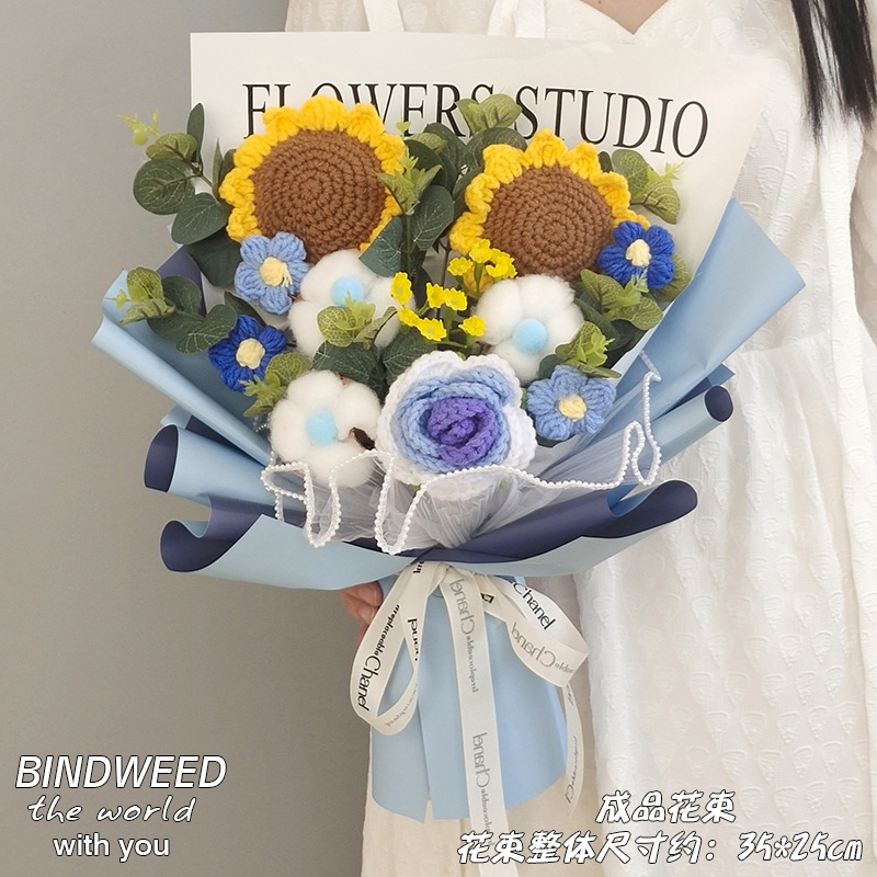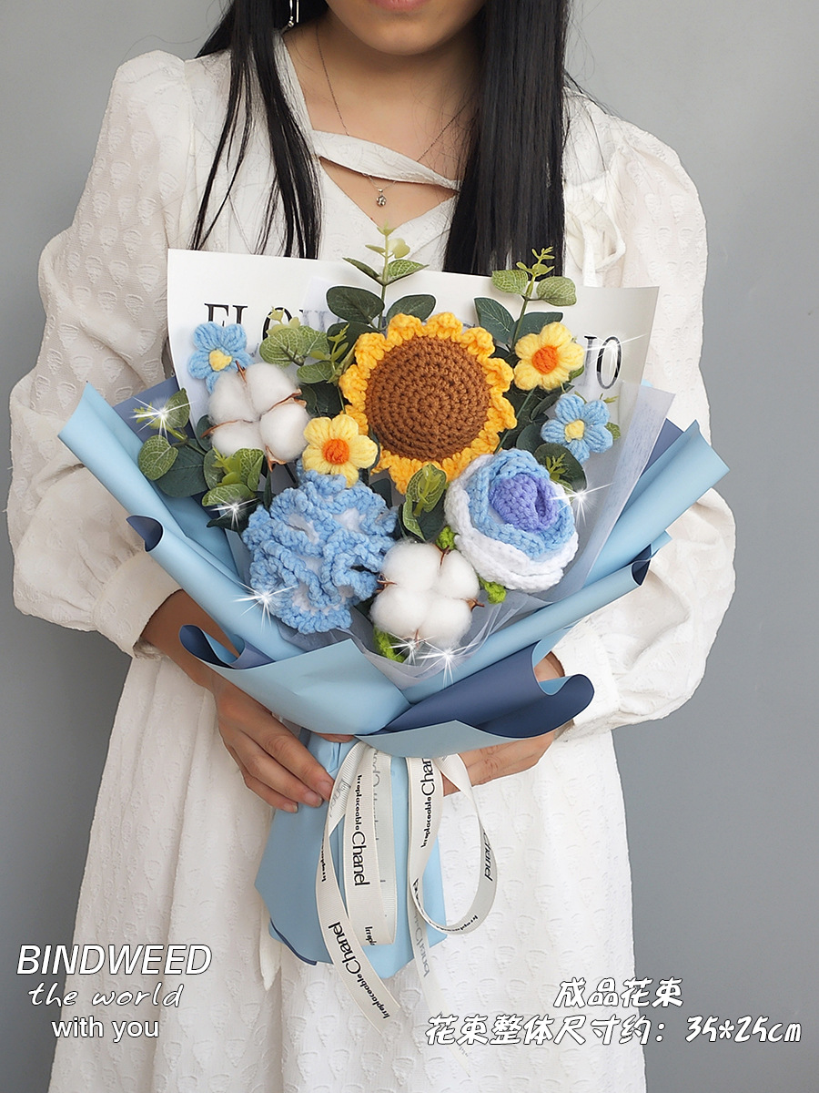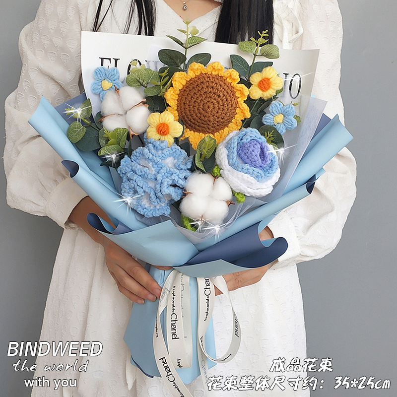 2023新款编织针织向日葵玫瑰康乃馨毕业花束毛线花生日母亲节送妈