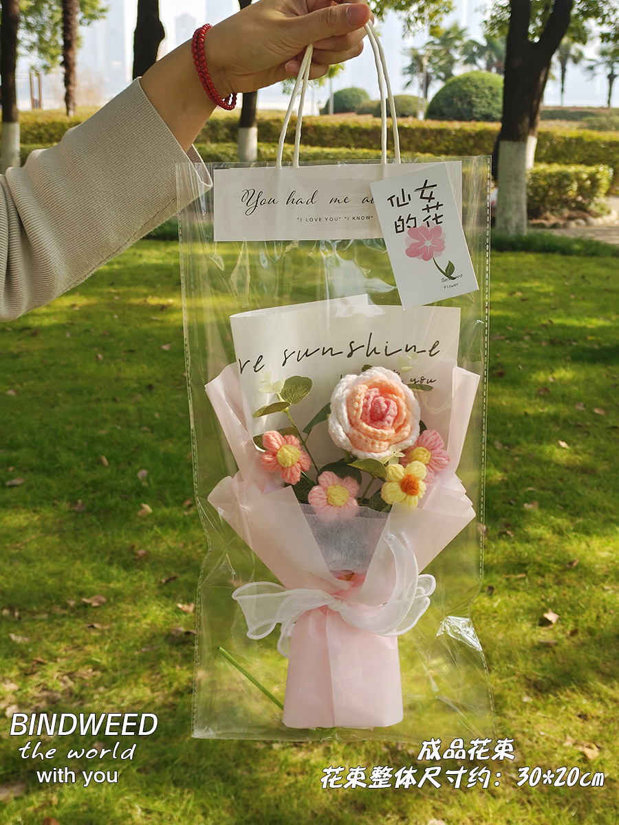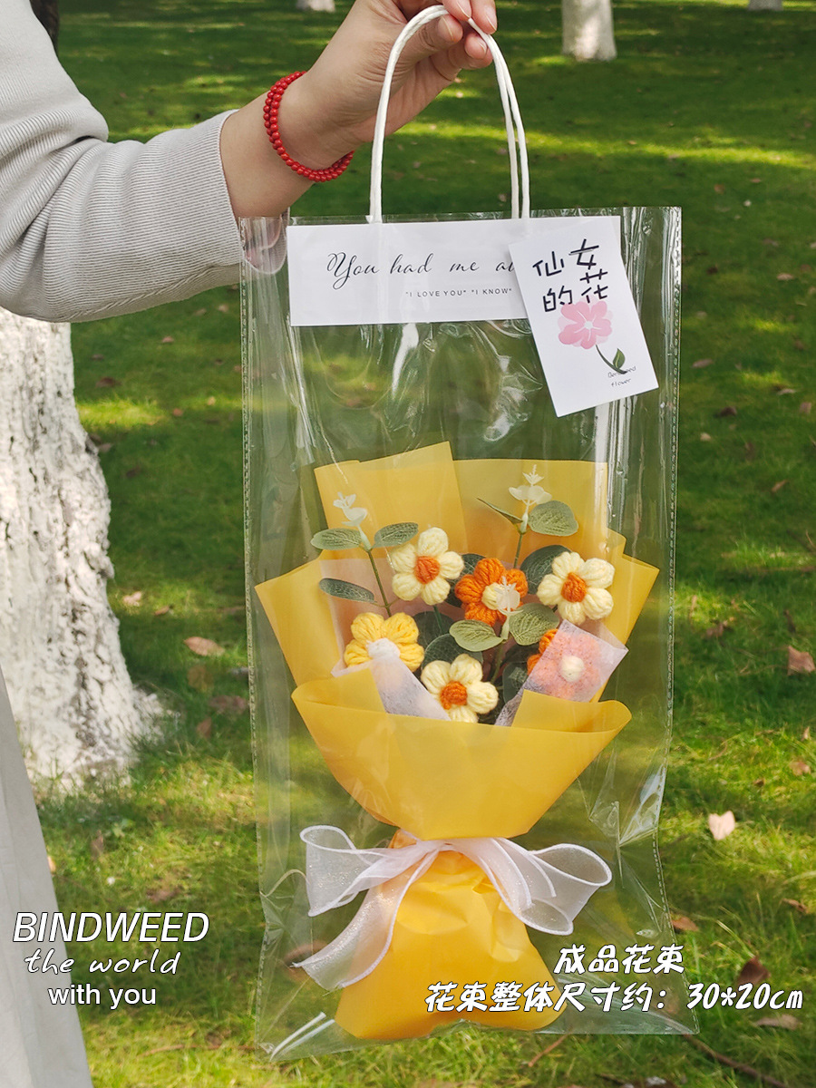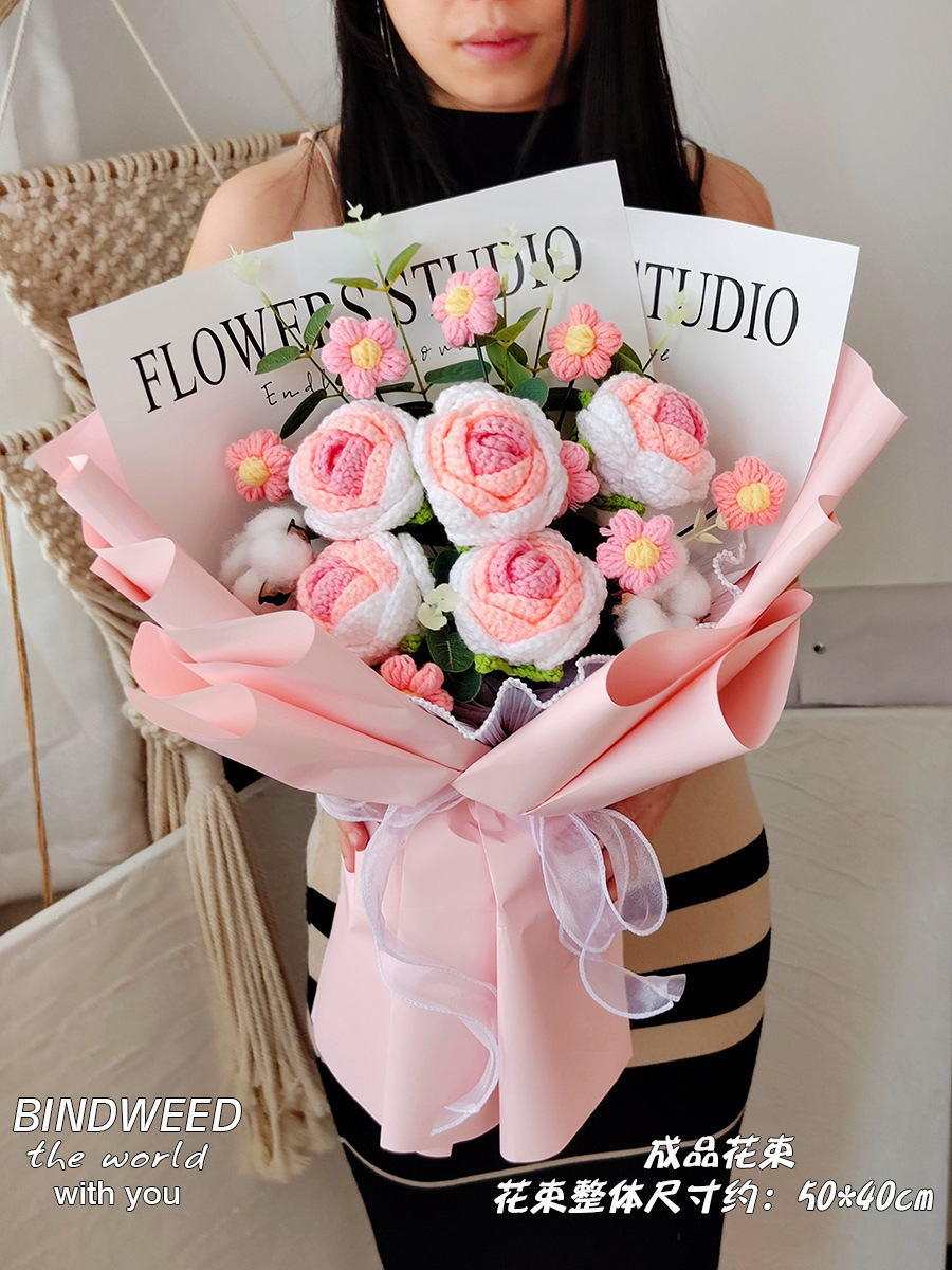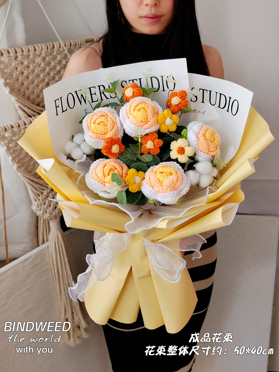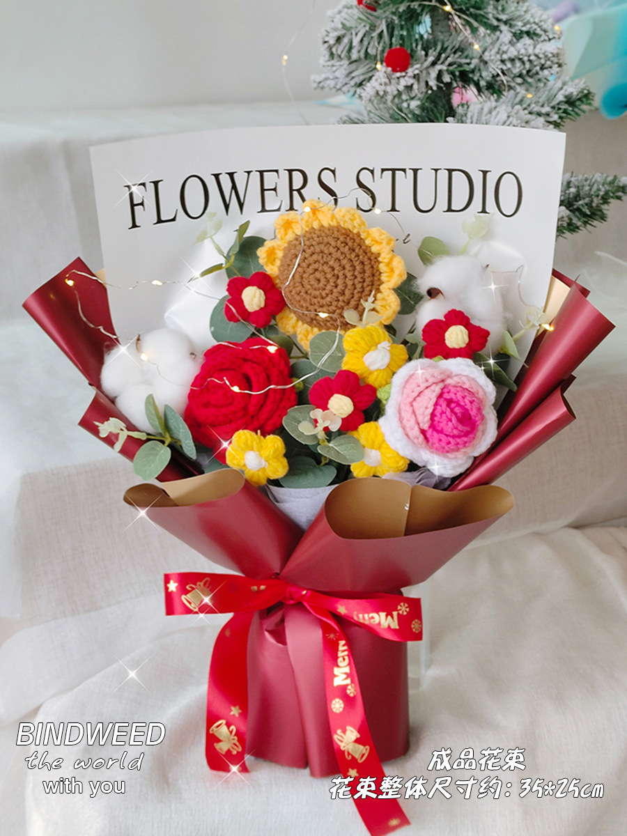 2023新款编织针织向日葵玫瑰康乃馨毕业花束毛线花生日母亲节送妈