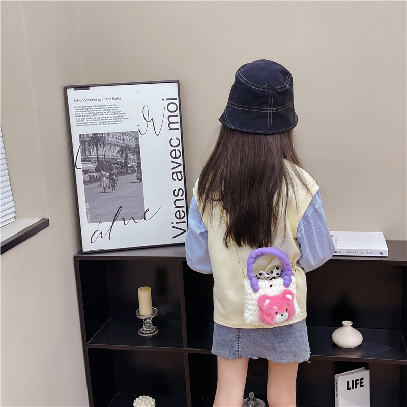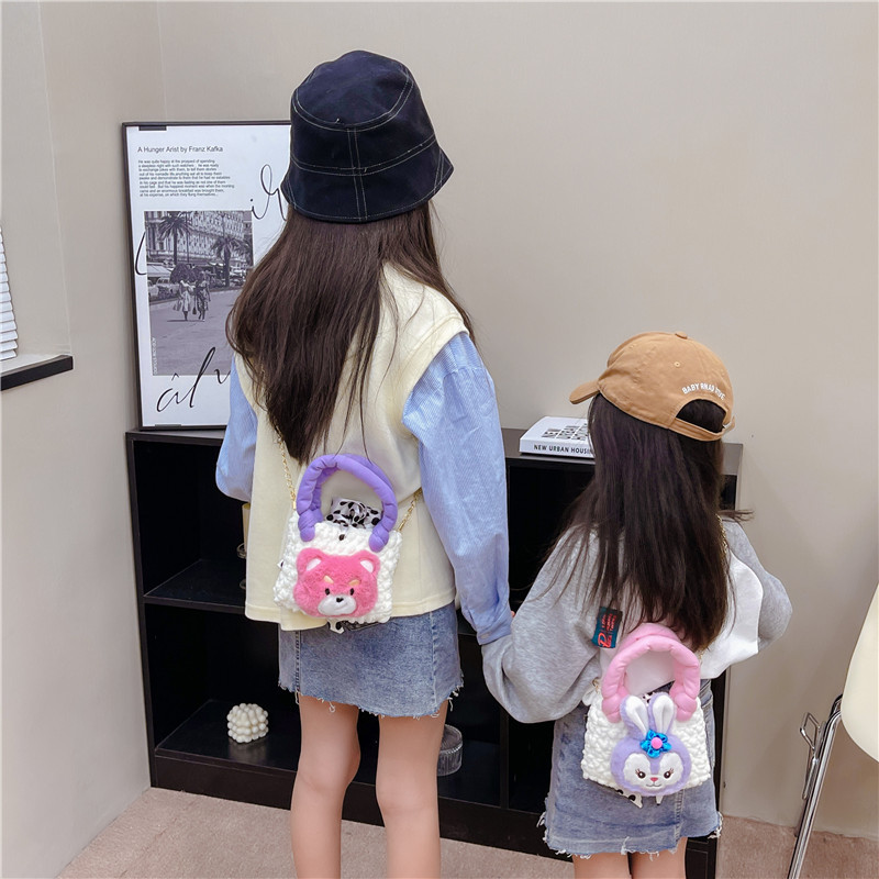 幸运小猪儿童包包可爱单肩包时尚毛绒小熊小兔配饰手提包女童挎包