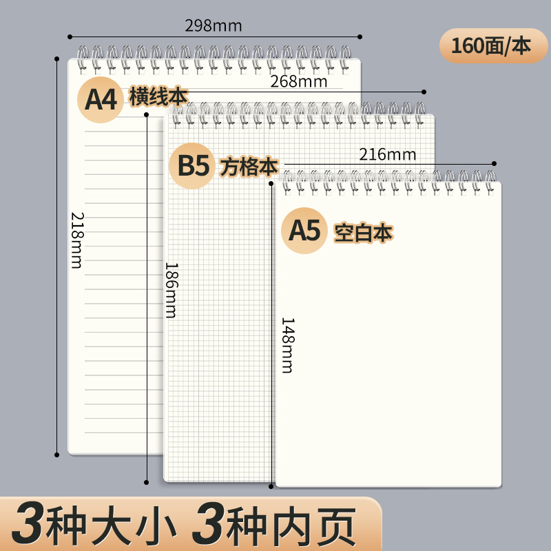 思进上翻线圈本批发A5/B5/A4记事本横线方格空白笔记本简约pp本子