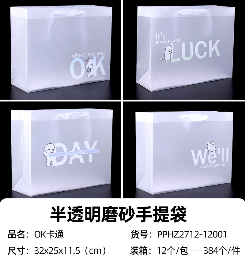 磨砂pp塑料手提袋 pvc透明购物手拎袋 礼品磨砂袋服装店包装袋子