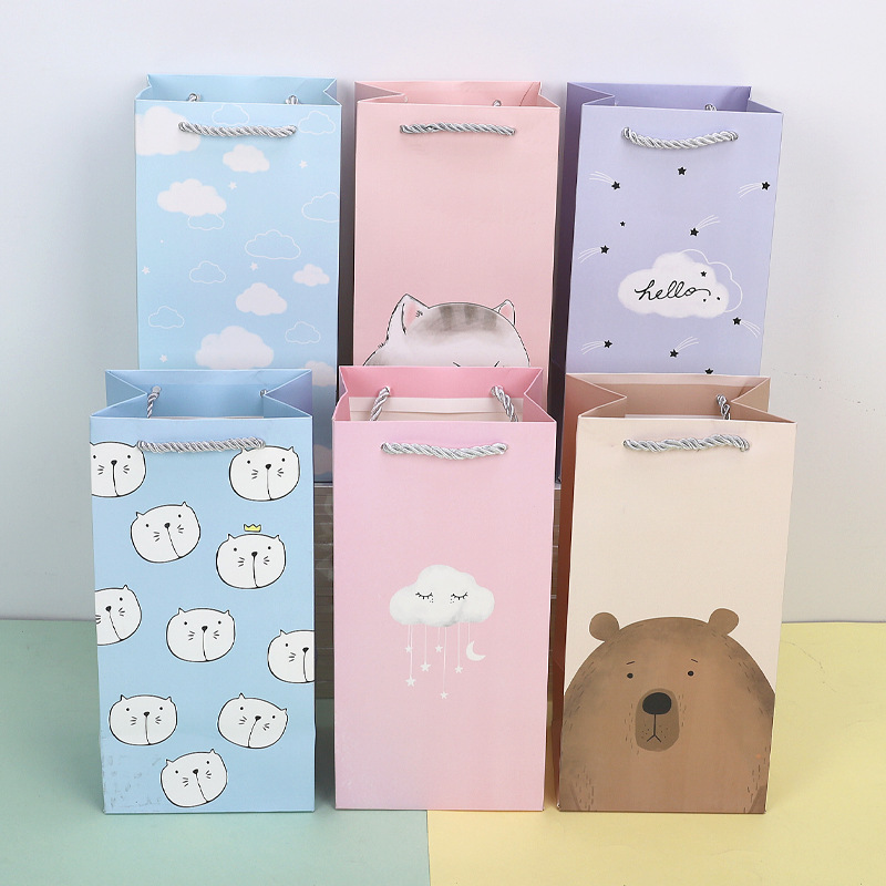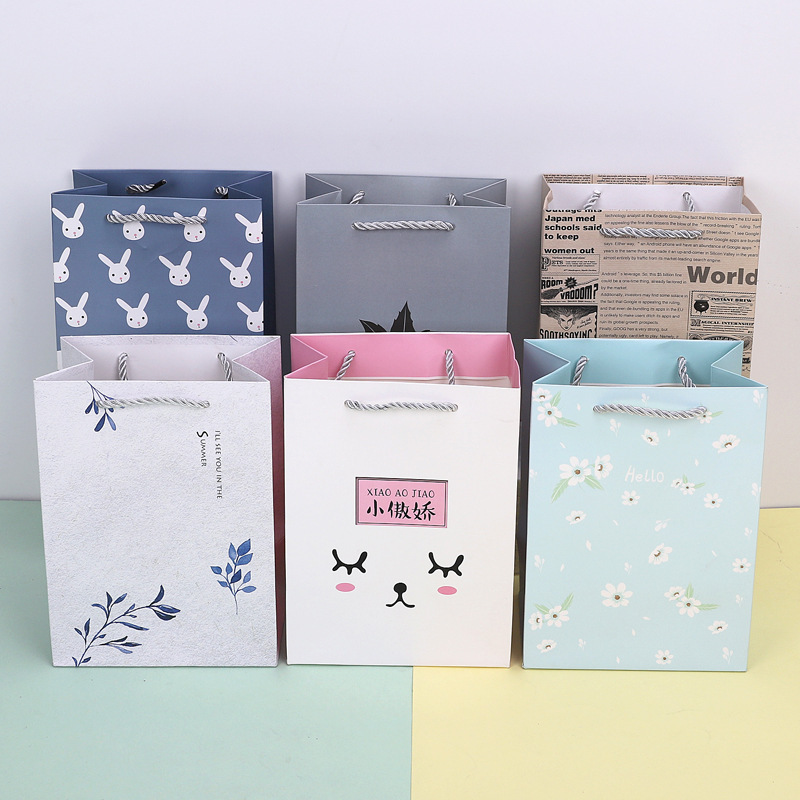 可爱礼品袋 白卡纸手提袋礼物袋子 服装店衣服包装袋手提镂空纸袋