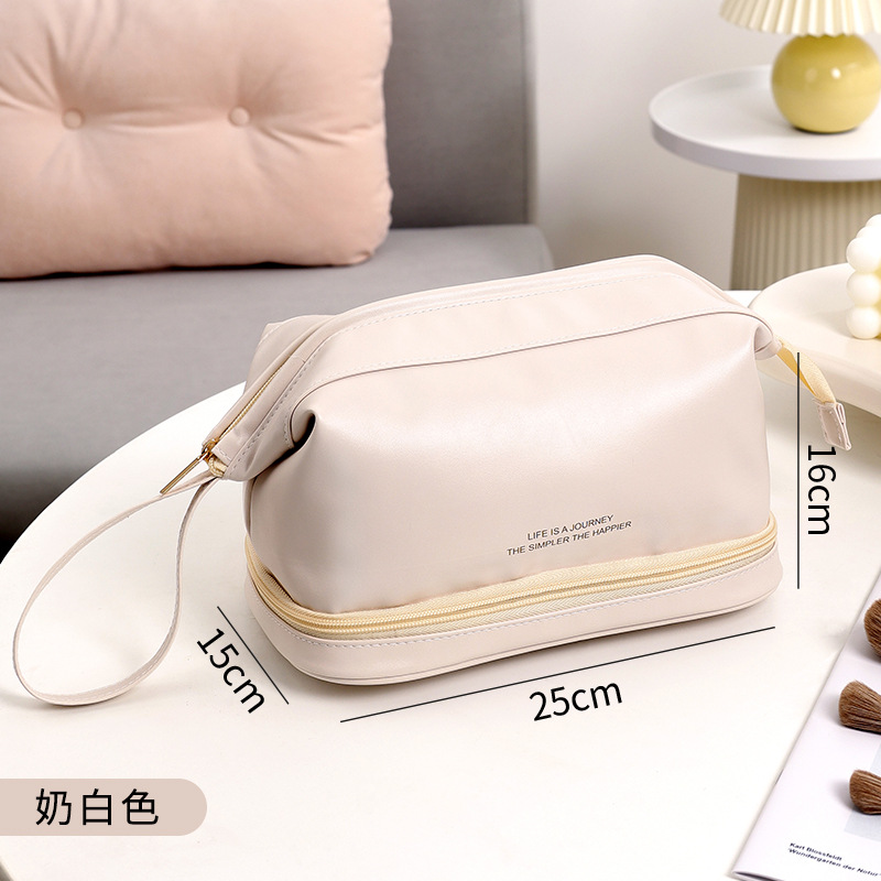 时尚双层化妆包便携手提洗漱用品收纳袋PU旅行防水洗漱包批发