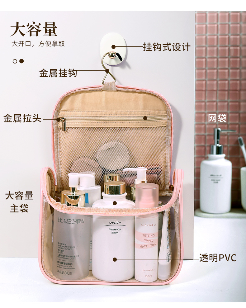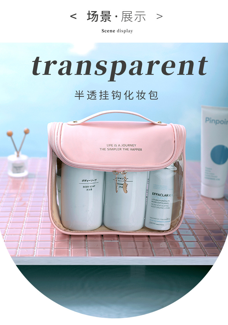 透明时尚洗漱包旅行半圆挂钩化妆品收纳包防水ins化妆包批发