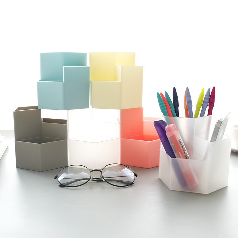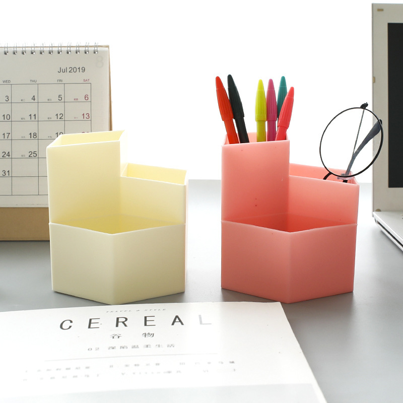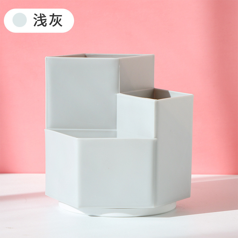 简约多功能六角创意笔筒 清新学生办公用塑料桌面收纳盒 笔筒