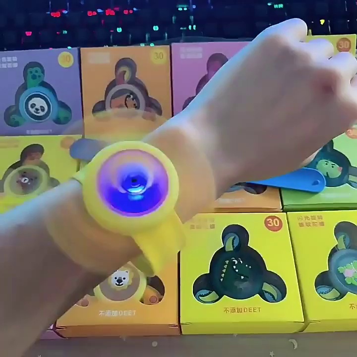 闪光旋转陀螺儿童手环防蚊驱蚊手表卡通发光啪啪圈闪光摆摊手环