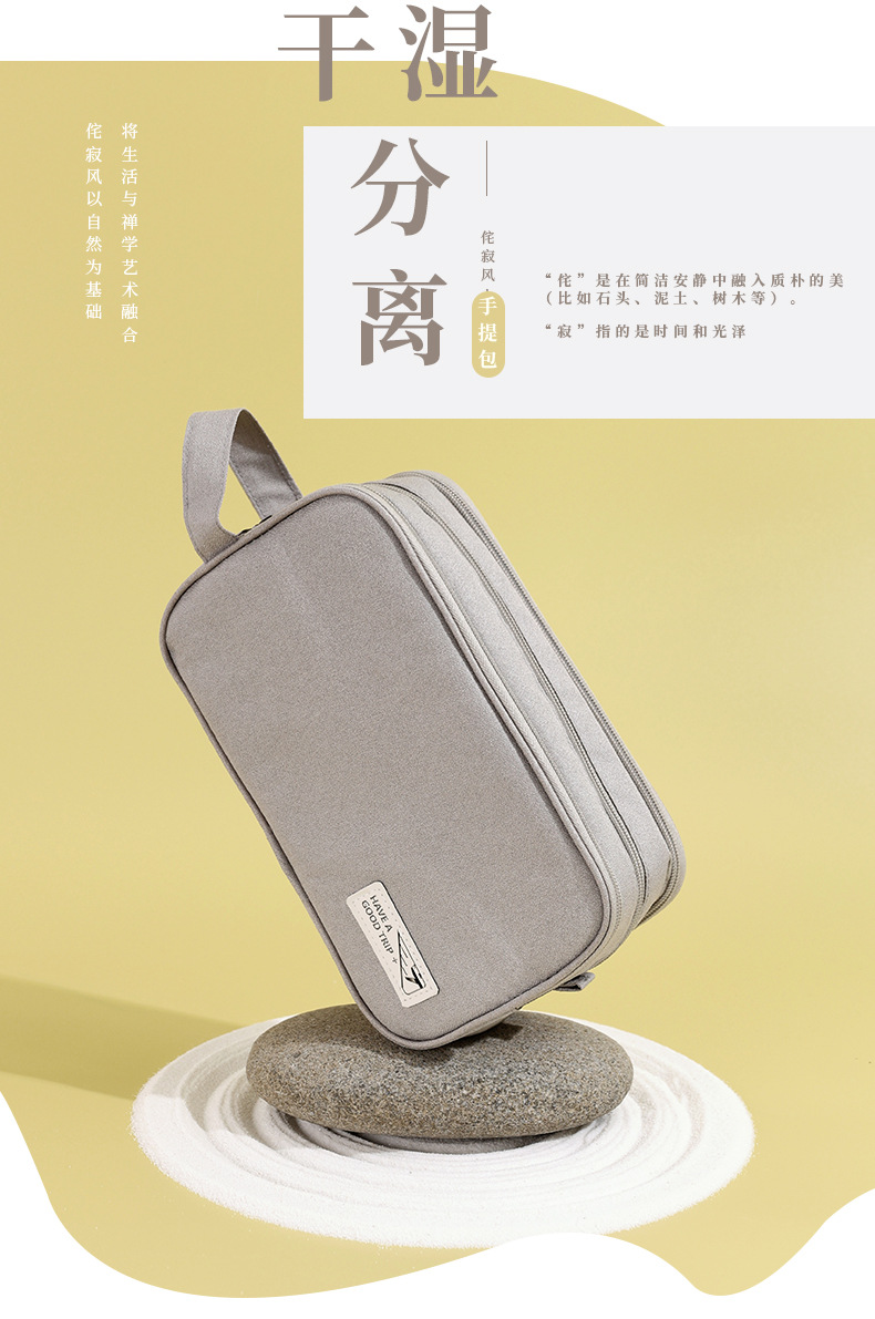 手提干湿分离包男士出差简约洗漱包大容量旅游化妆用品收纳袋