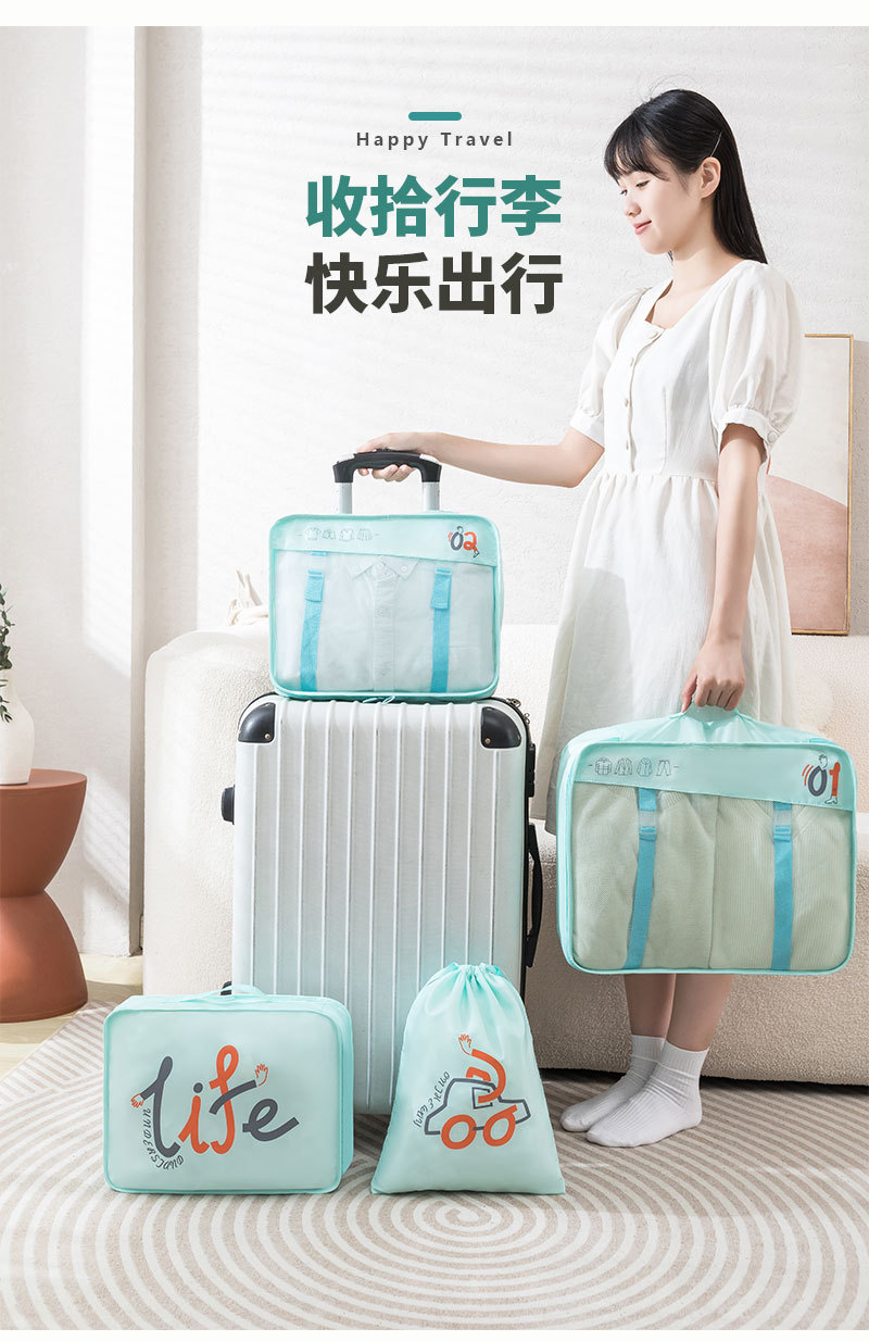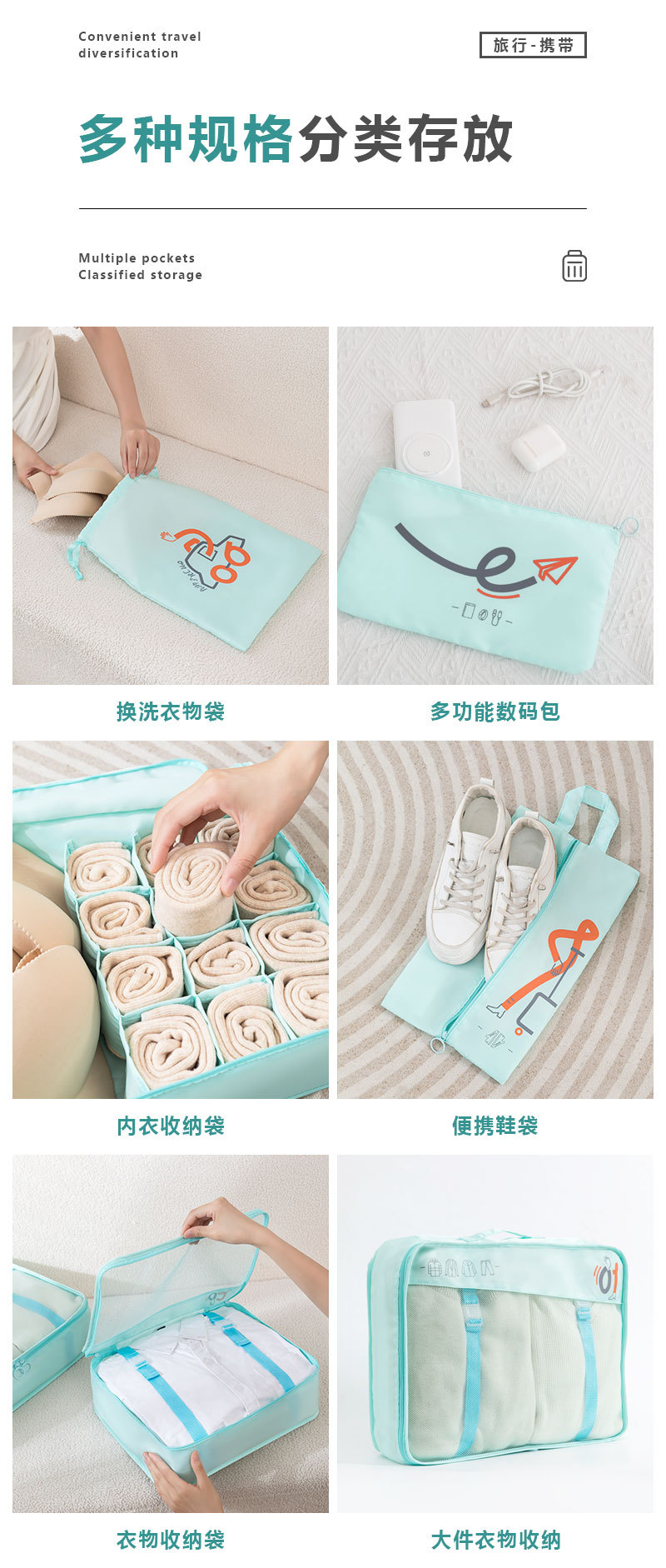 出差整理分装收纳六件套行旅行衣服收纳袋装袜子内衣收纳套装