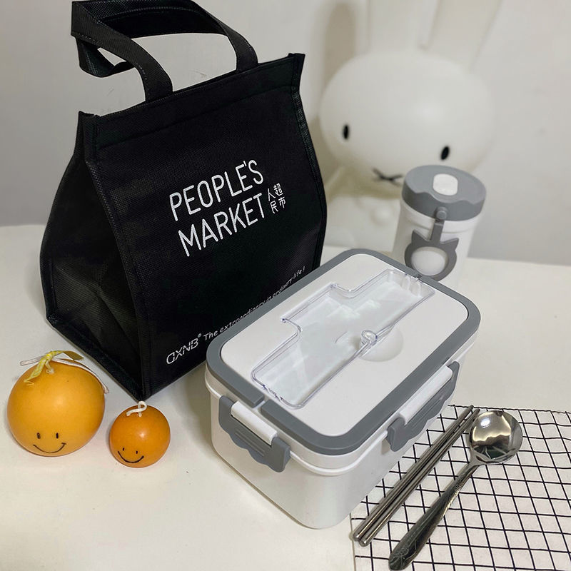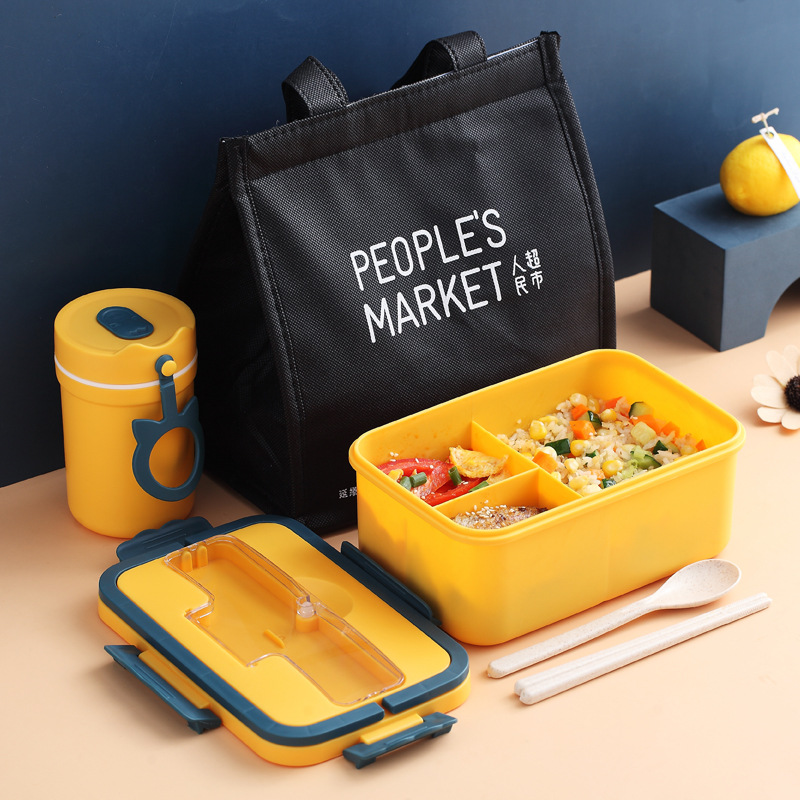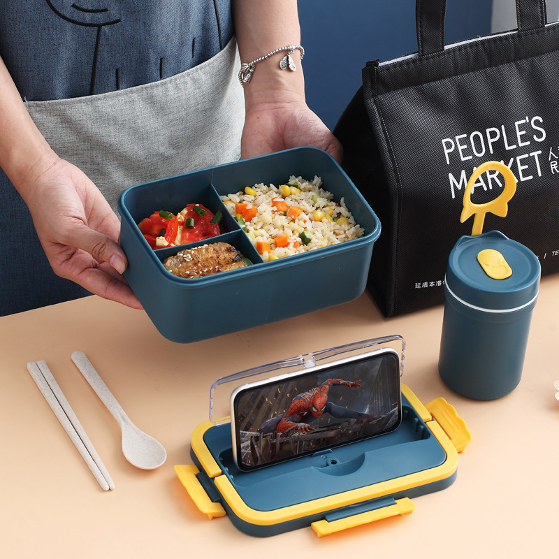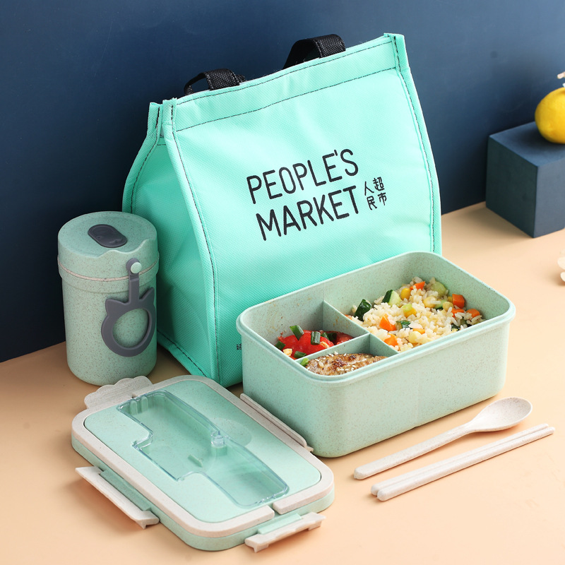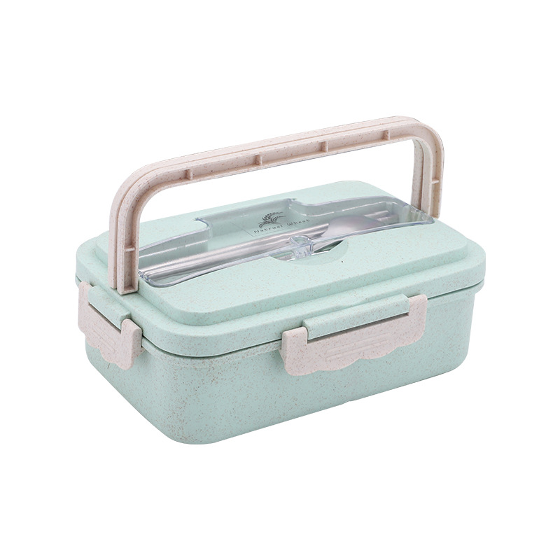 小麦秸秆手提式饭盒学生成人工作餐盒可微波炉加热方形分格带餐具