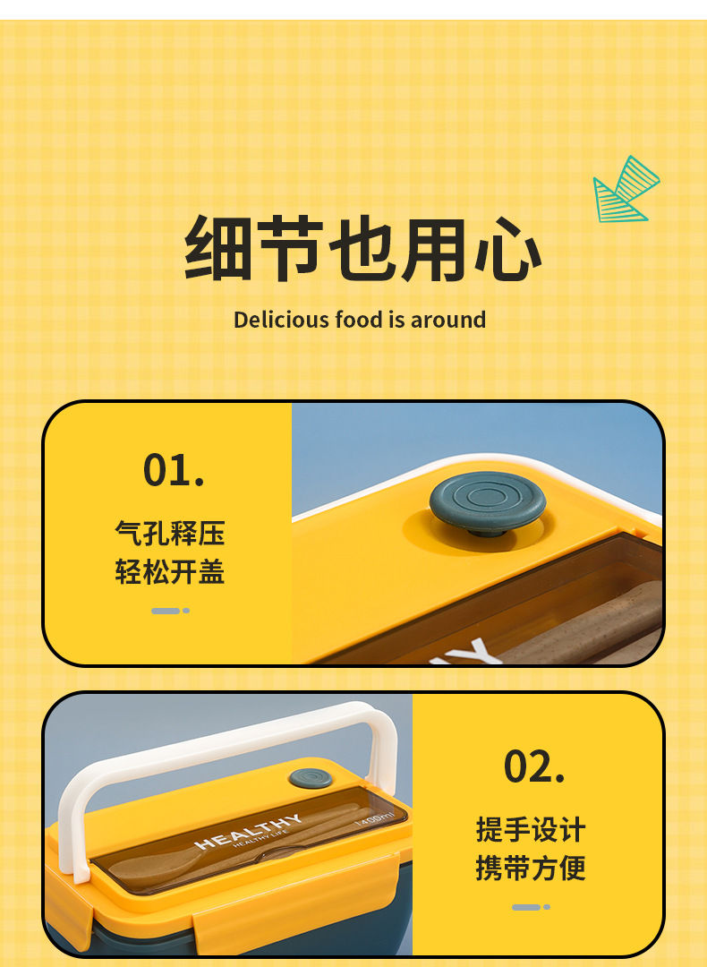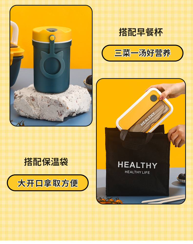 亚马逊INS分格饭盒便携学生成人水果便当盒可加热午餐盒bunch box