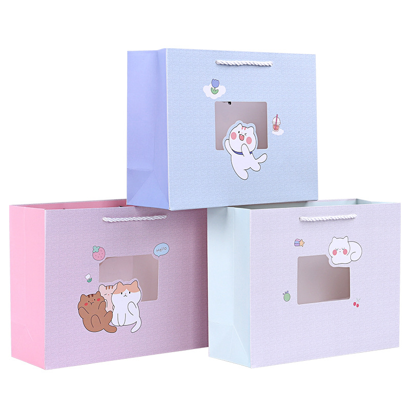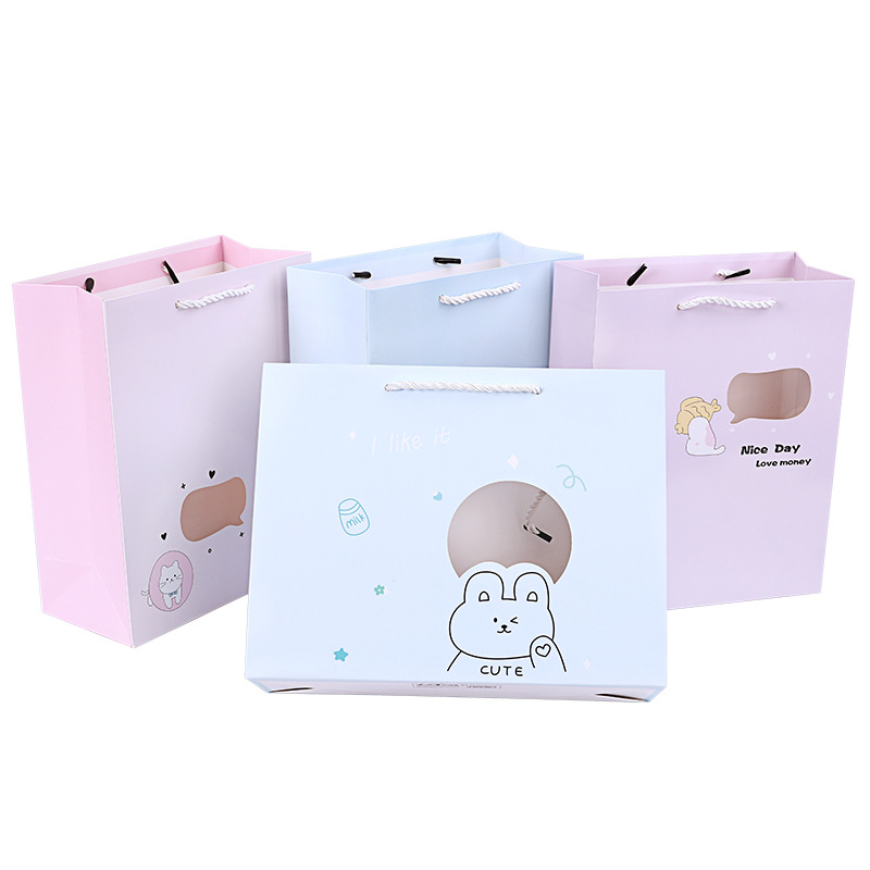 新款现货批发卡通纸质手拎袋可定 制印刷购物袋白卡纸 礼品手提袋