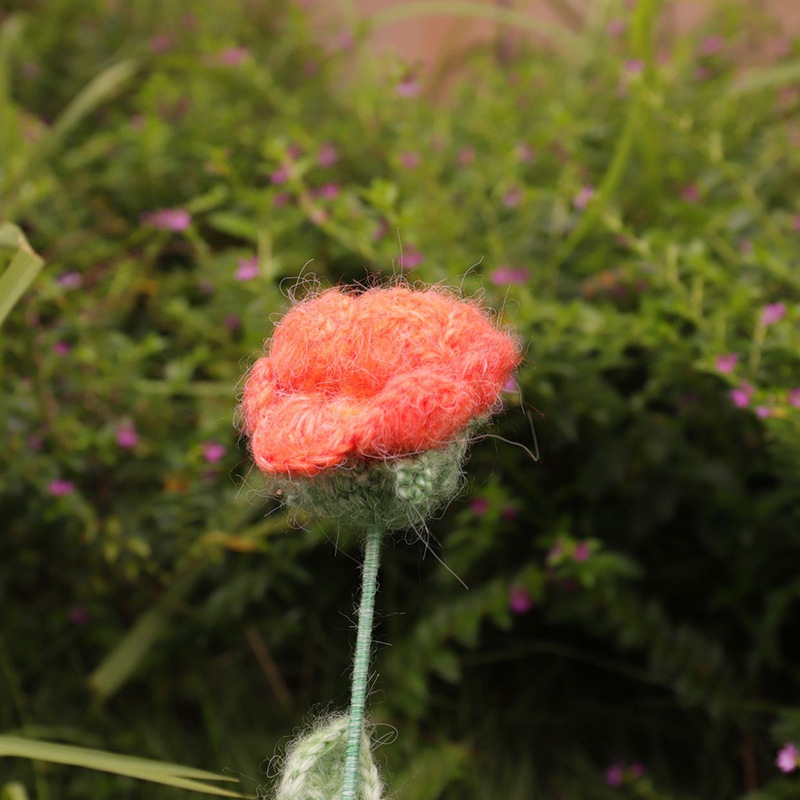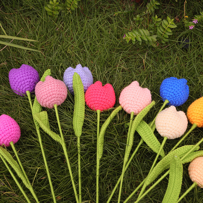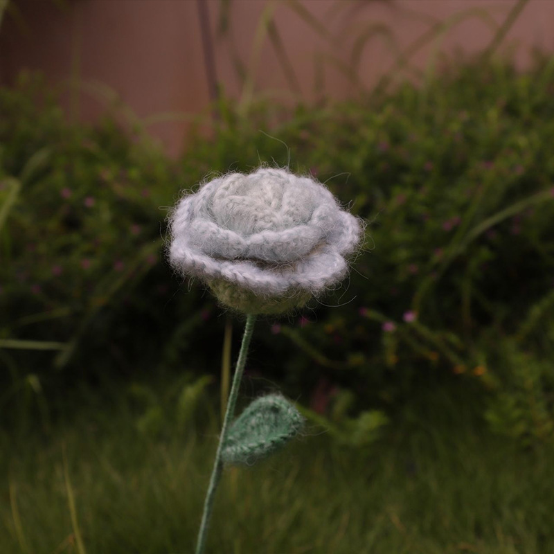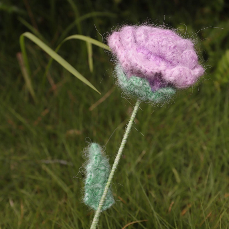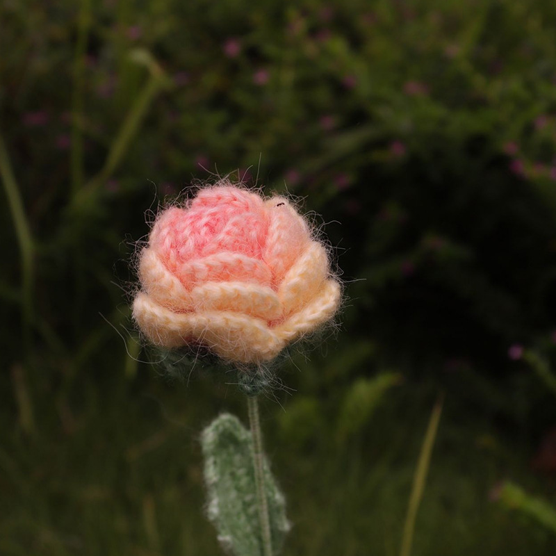 现货七夕节成品手工编织玫瑰花 铃兰花向日葵仿真花毛线针织花束