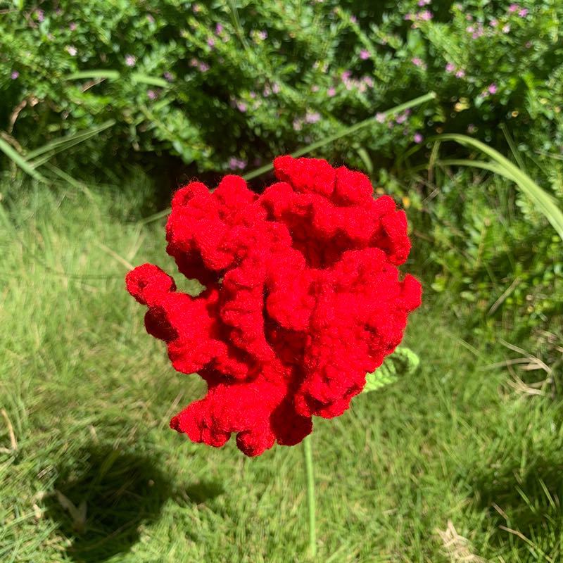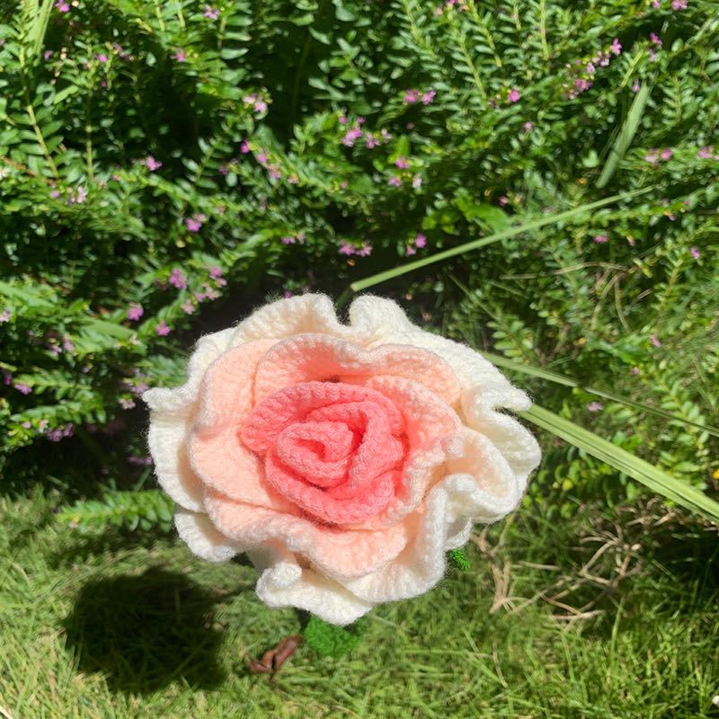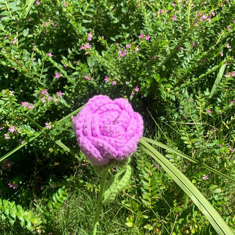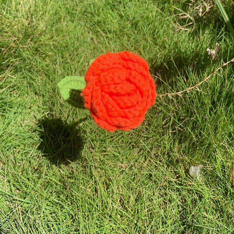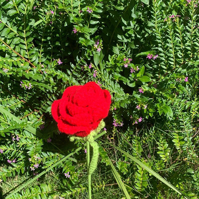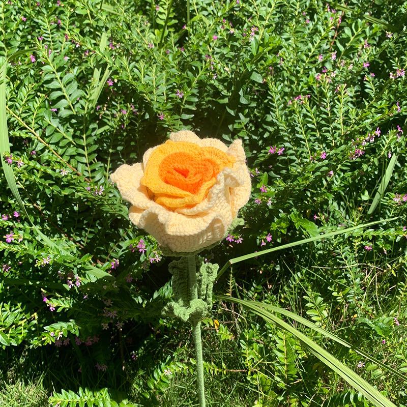 现货七夕节成品手工编织玫瑰花 铃兰花向日葵仿真花毛线针织花束