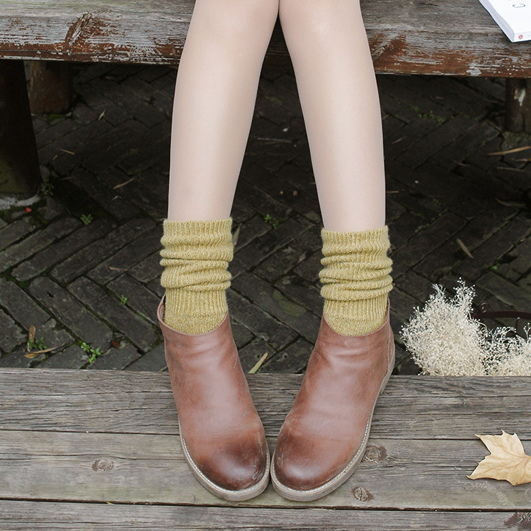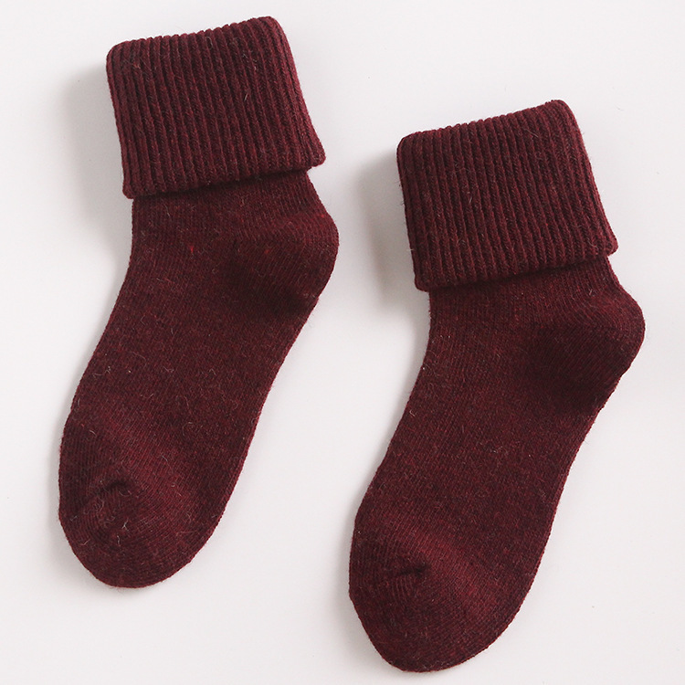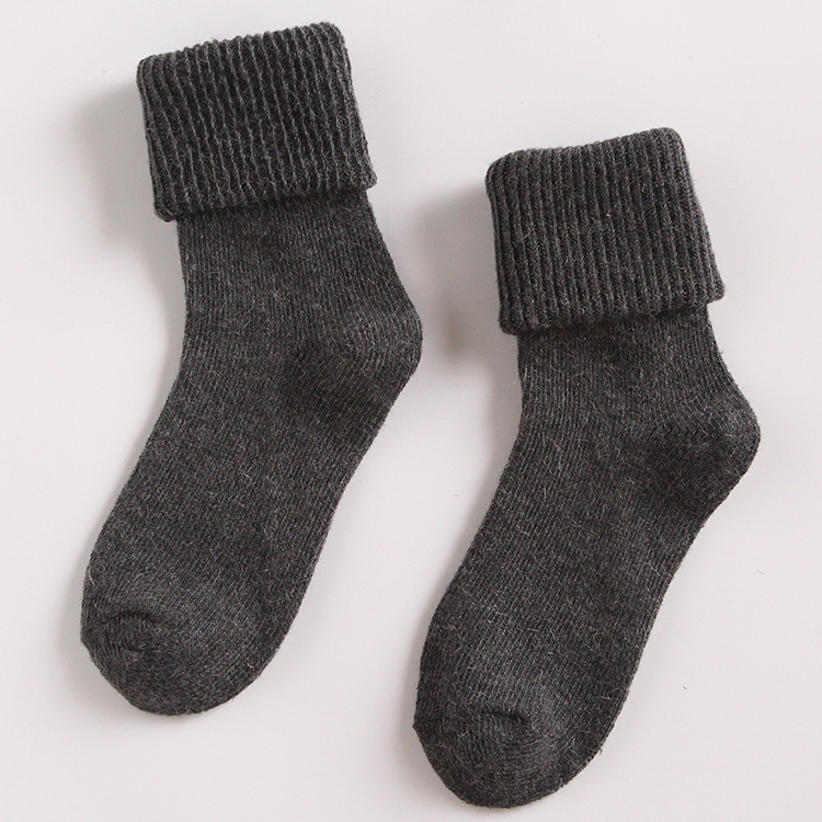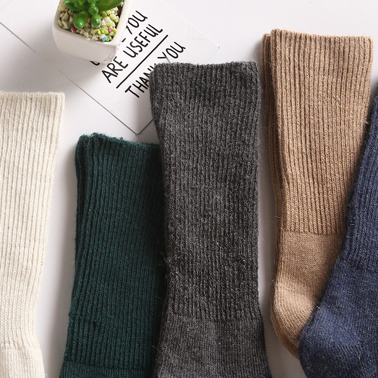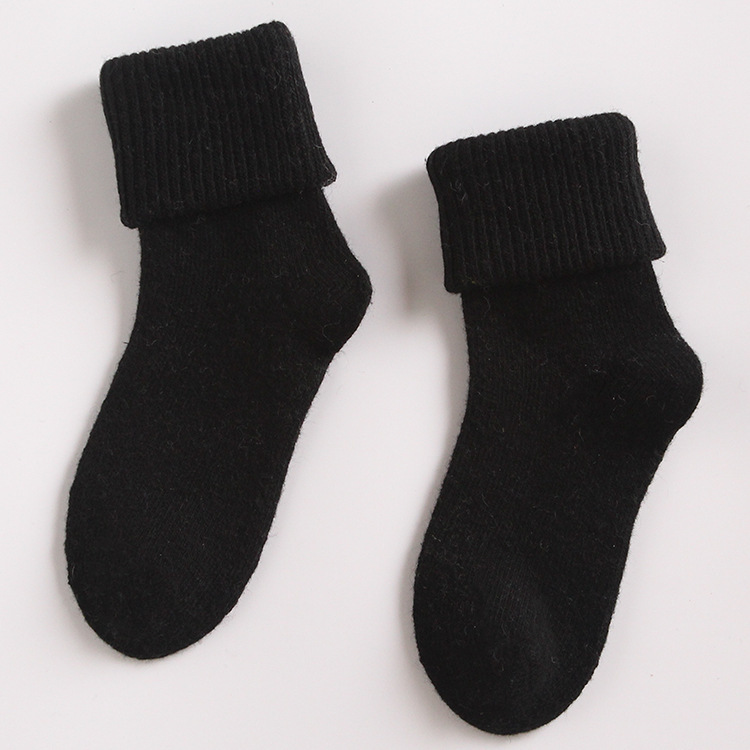 秋冬兔羊毛女士堆堆袜子 纯色女士中筒羊毛袜子 百搭女士羊毛袜子