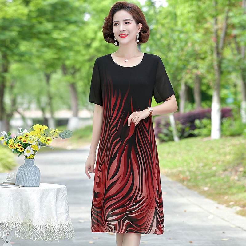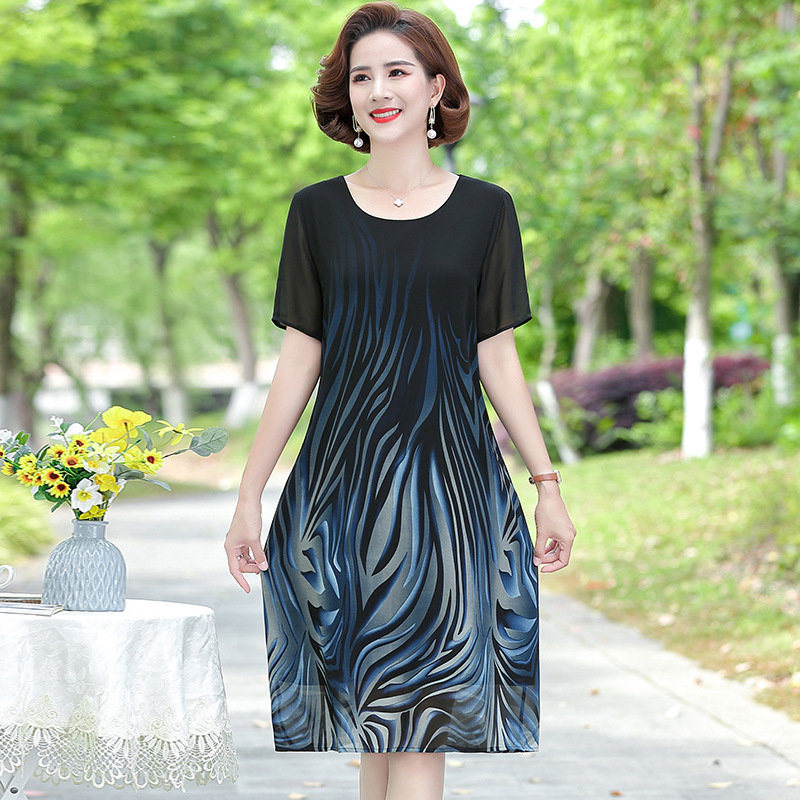 妈妈装连衣裙宽松显瘦中老年大码女装夏季40岁50妈妈洋气裙子批发