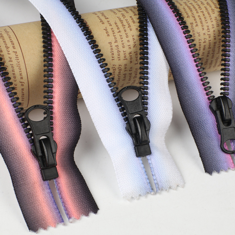 3#5#8#热转移印树脂拉链树脂闭尾自锁拉链条喷色渐变印花胶牙拉链
