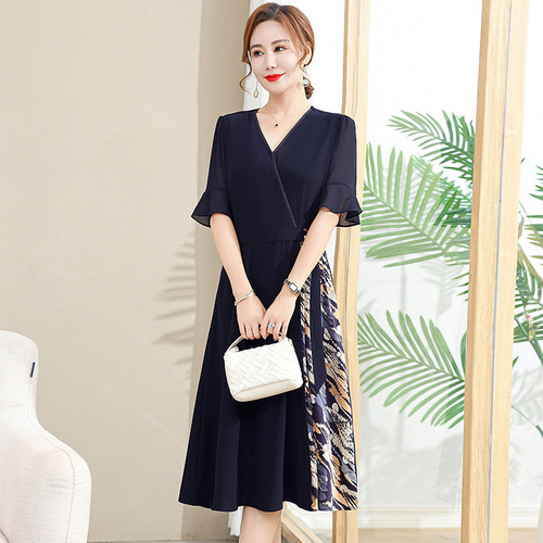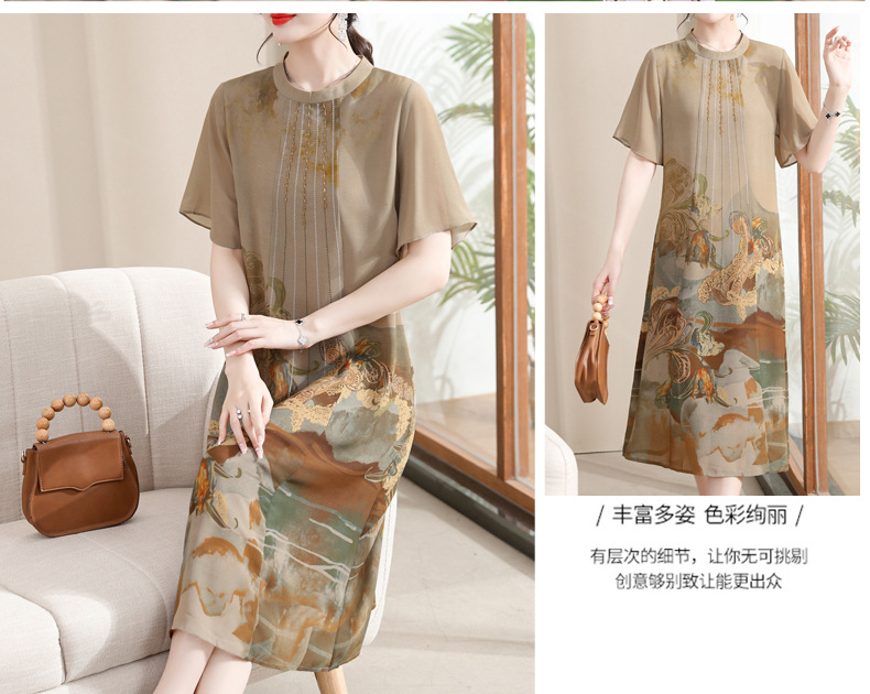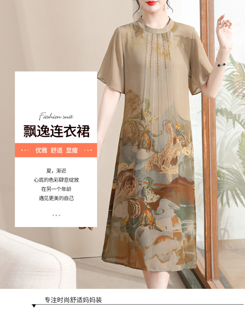 中老年妈妈装改良款旗袍连衣裙宽松舒适印花长裙2023新款气质女装