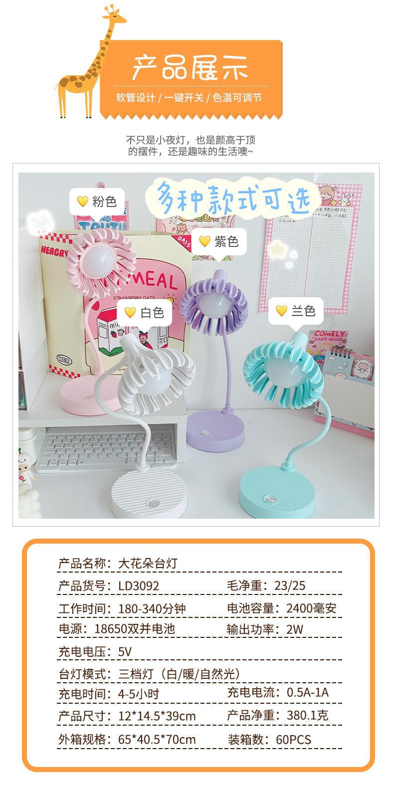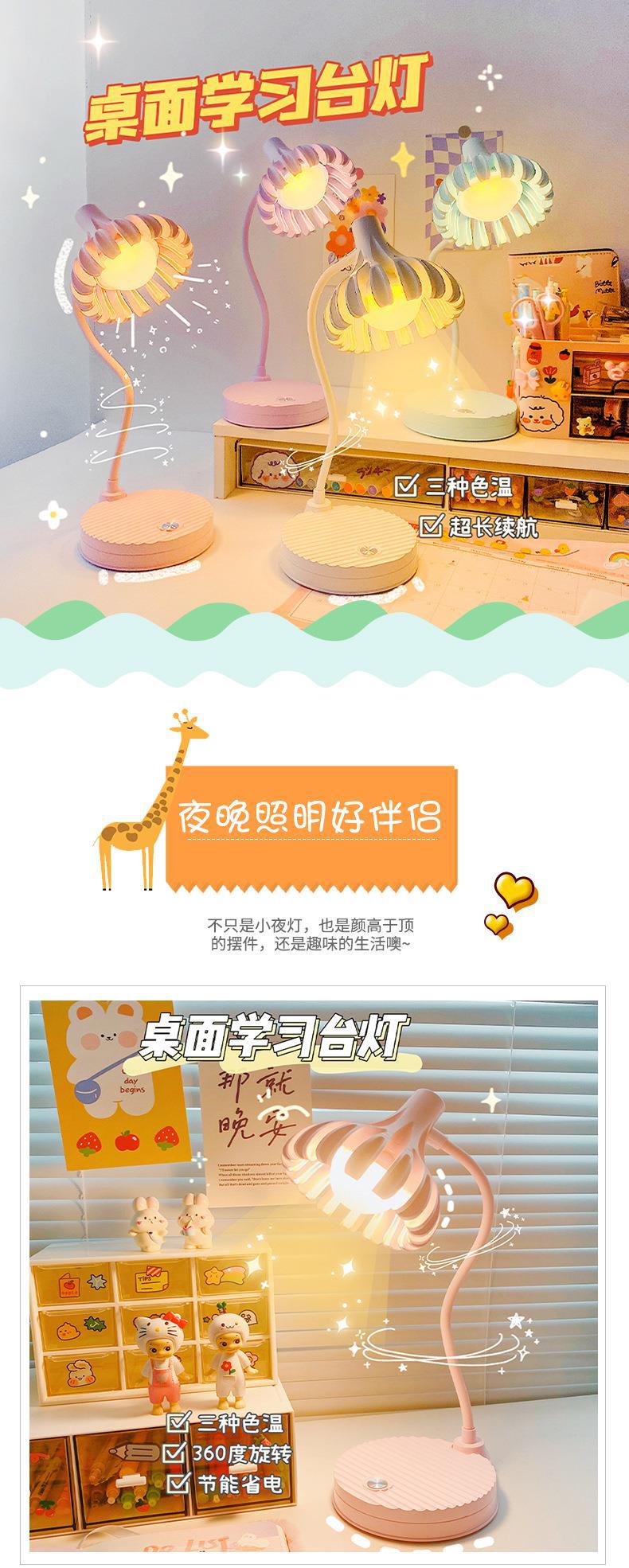 新款花形折叠LED台灯 学习卧室床头灯小学生写字书桌宿舍三挡触摸