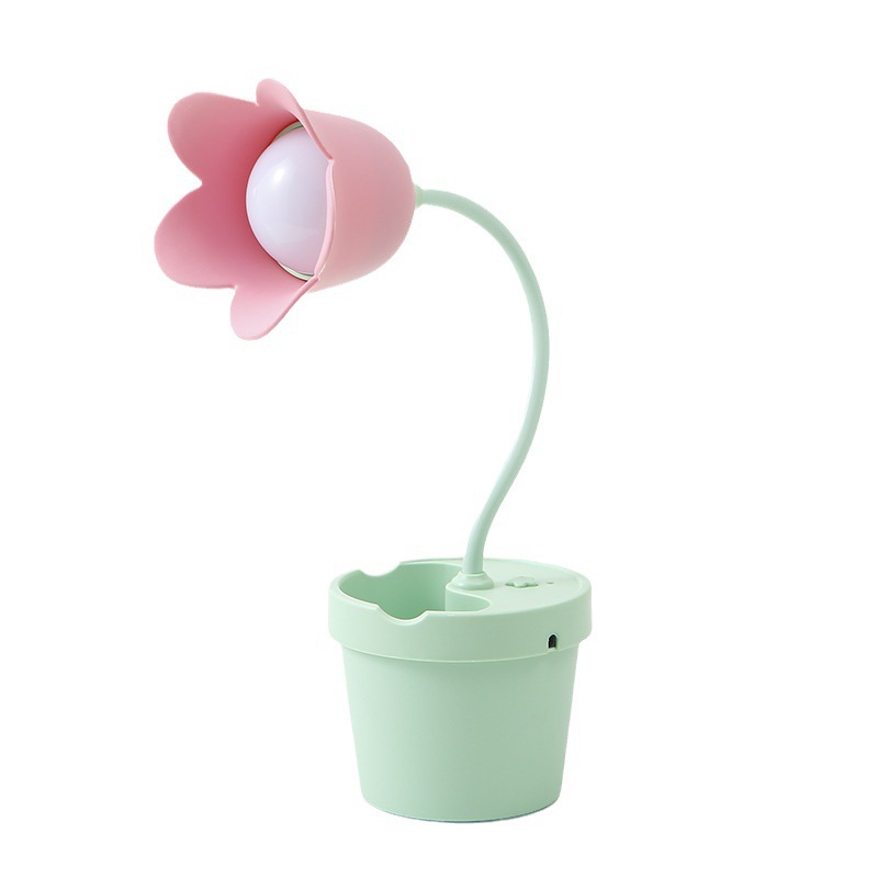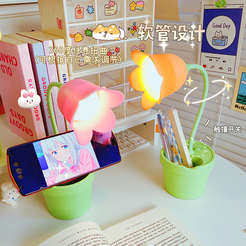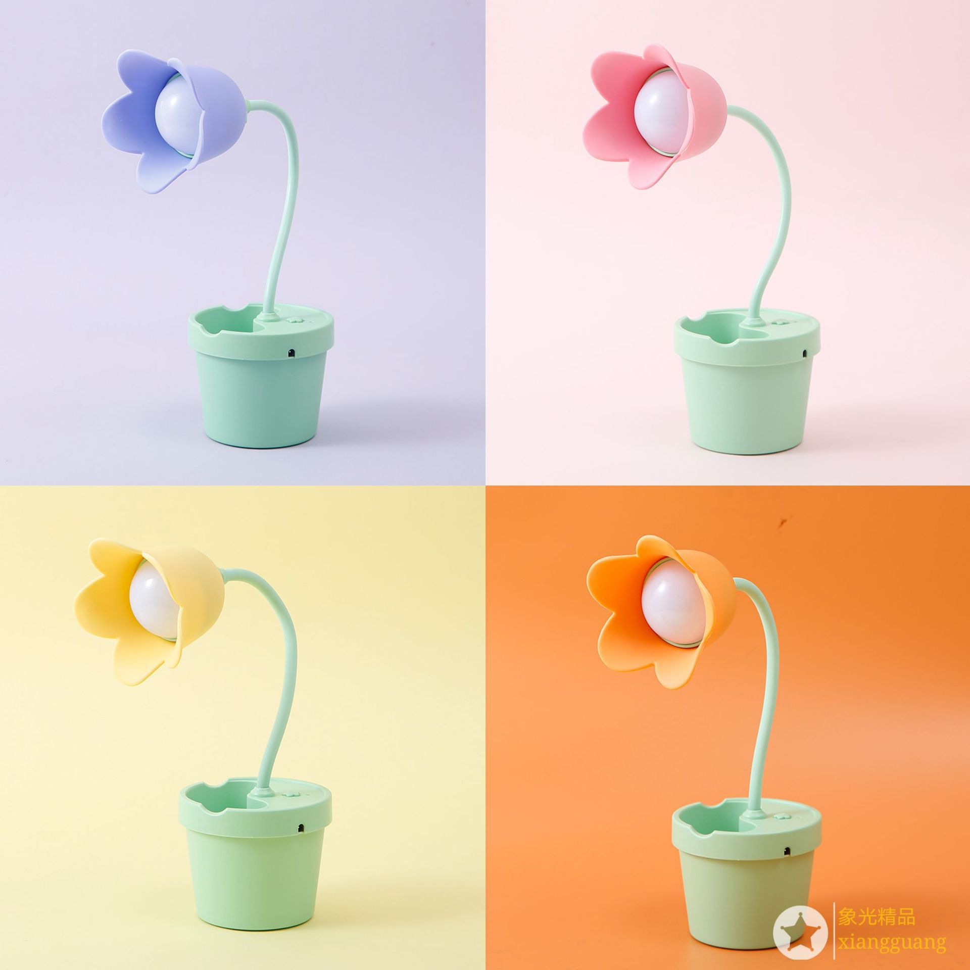 简约花朵笔筒台灯LED充电小夜灯 多巴胺色笔筒收纳台灯学生书桌灯