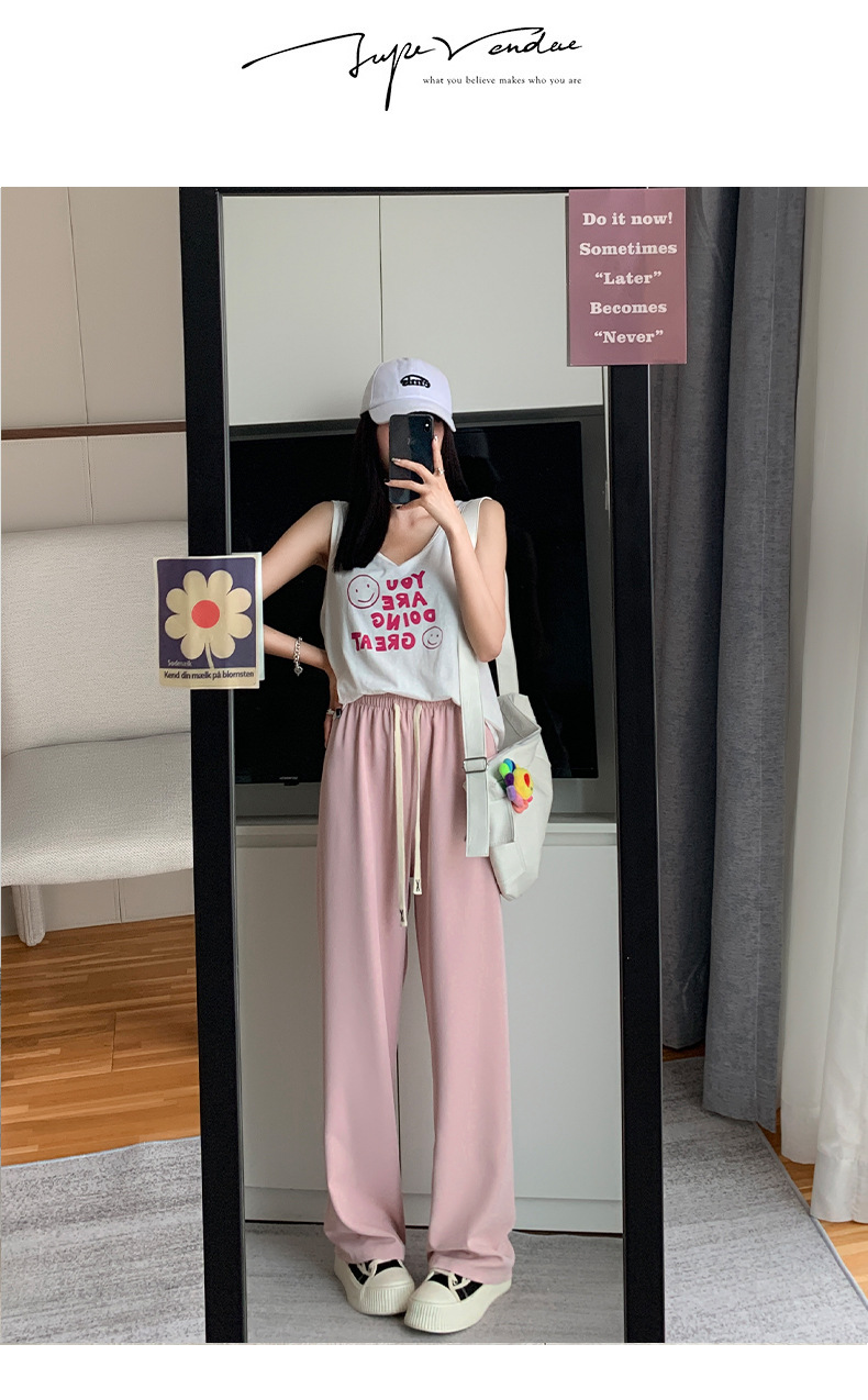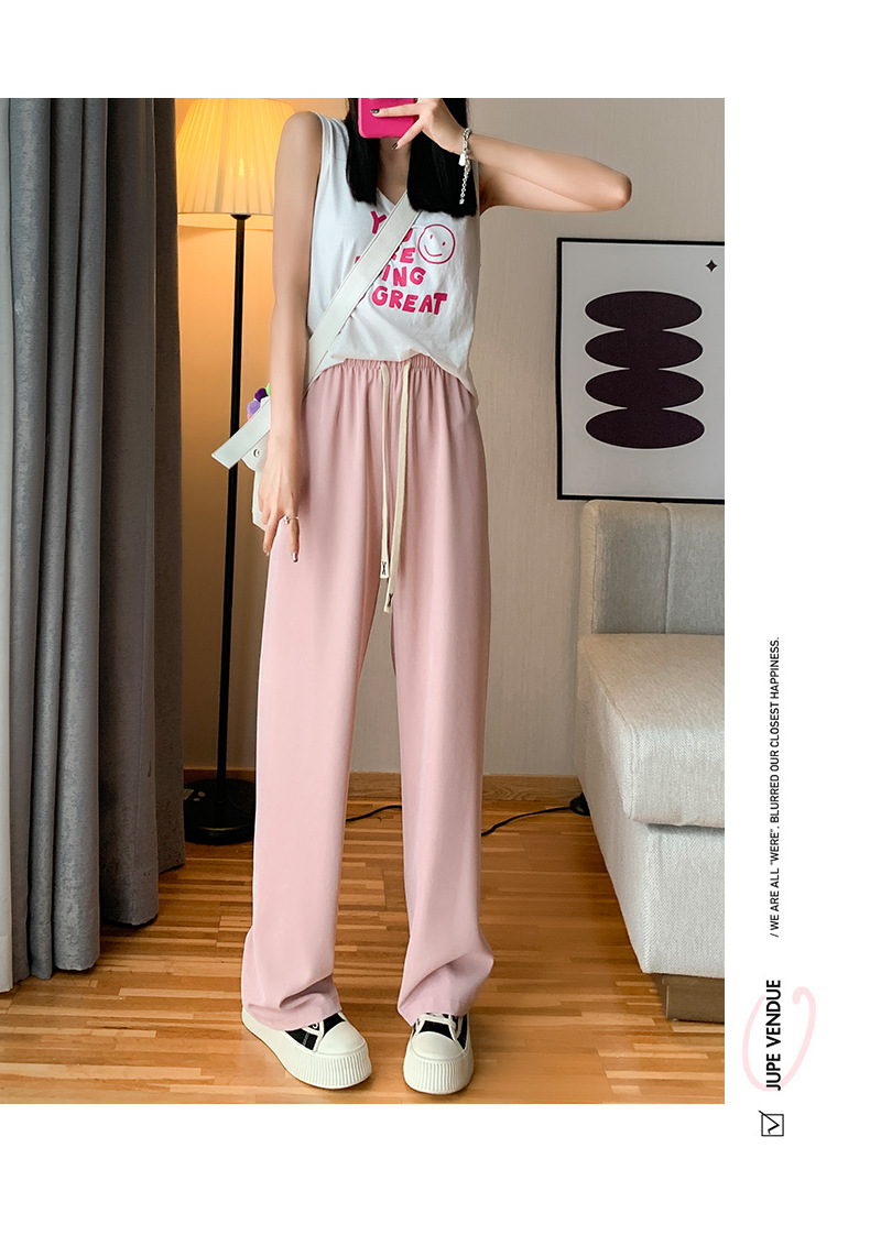 2023年春夏新款西装裤阔腿裤女高腰垂感马卡龙宽松直筒裤