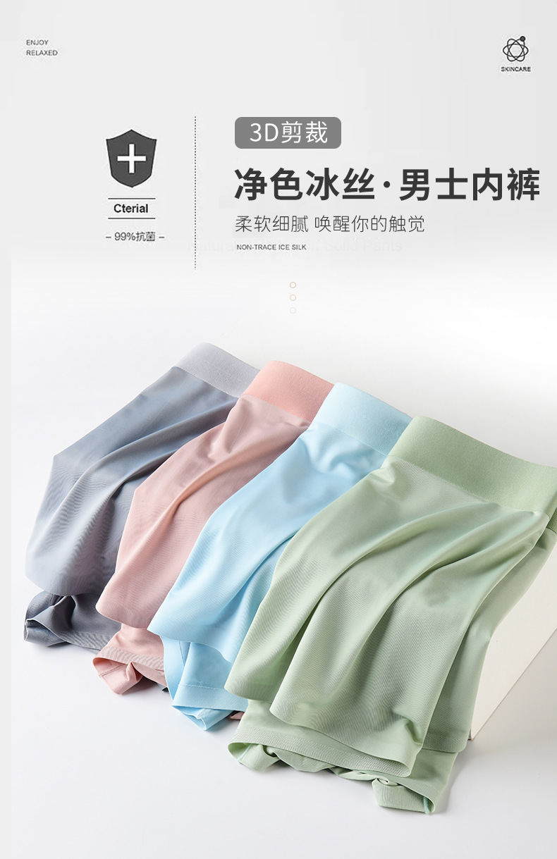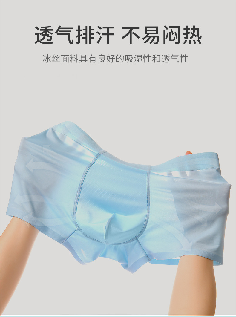 2023夏季冰丝面膜内裤男轻薄纯色透气内裤清凉无痕男生四角裤批发