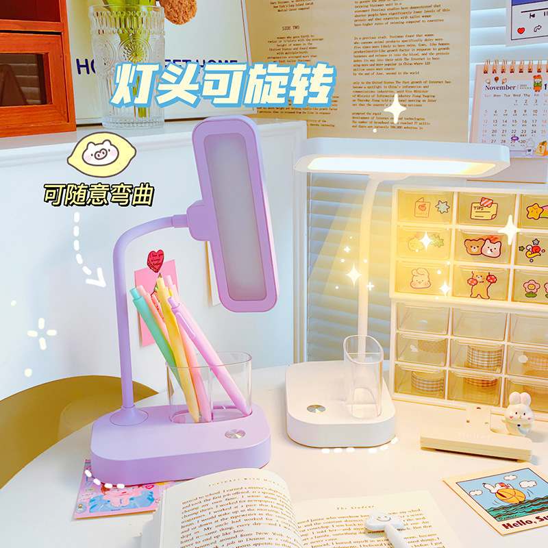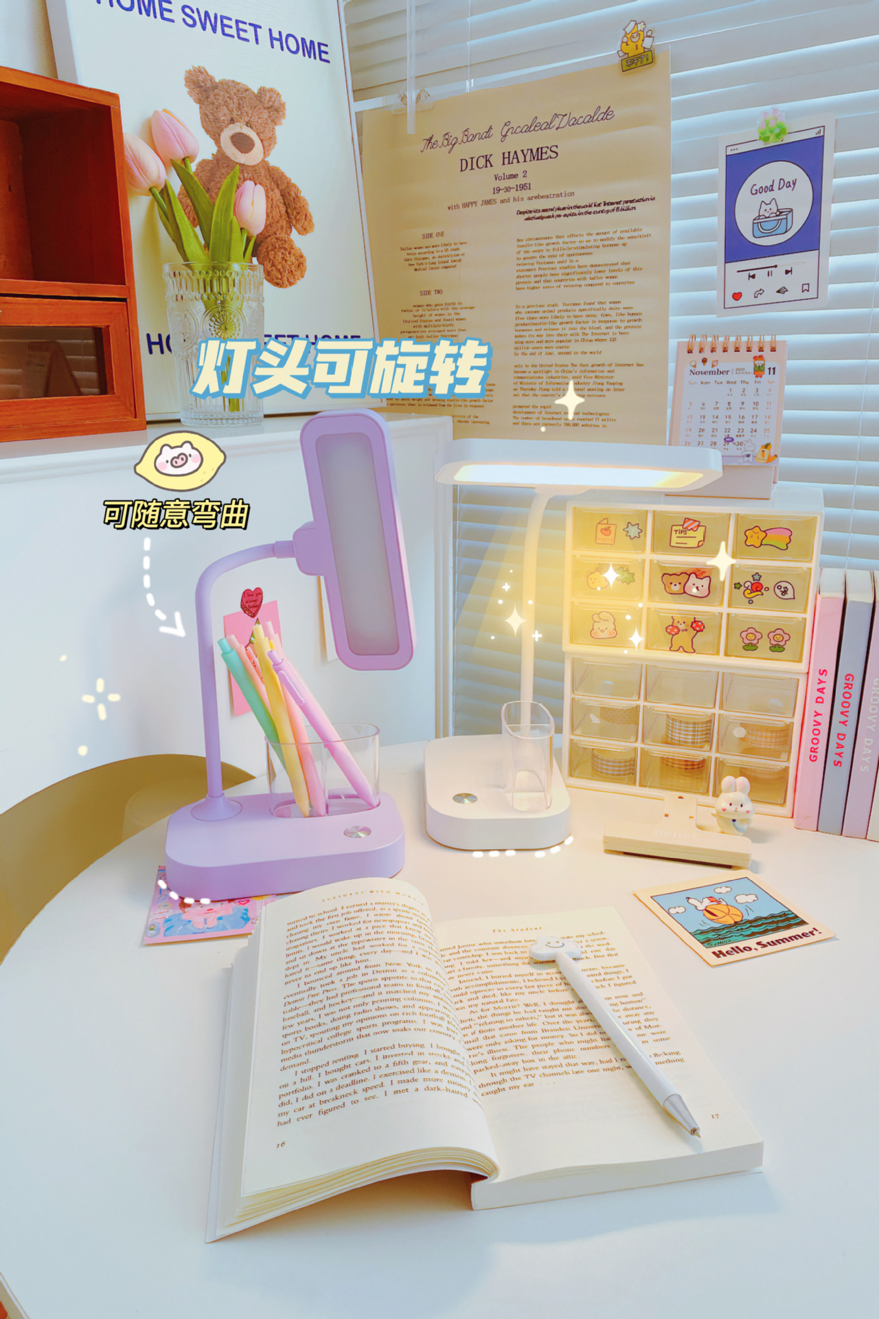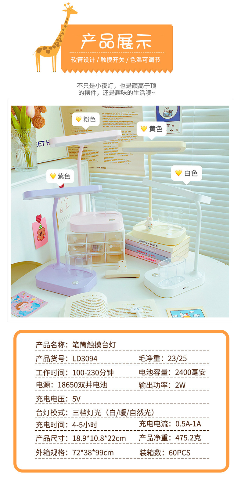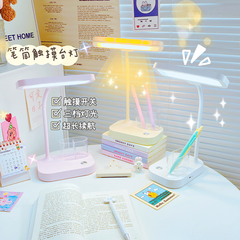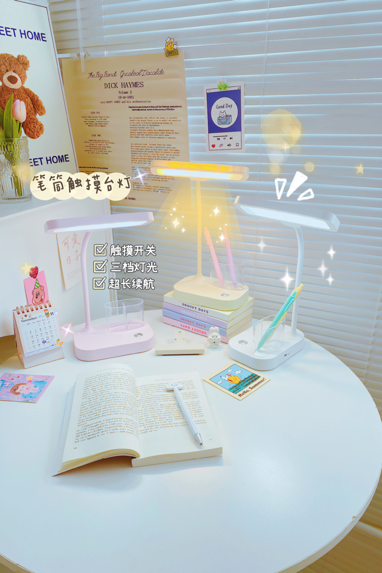 LED触摸调光笔筒台灯 学生书桌写字台灯 简约USB充电台式小夜灯