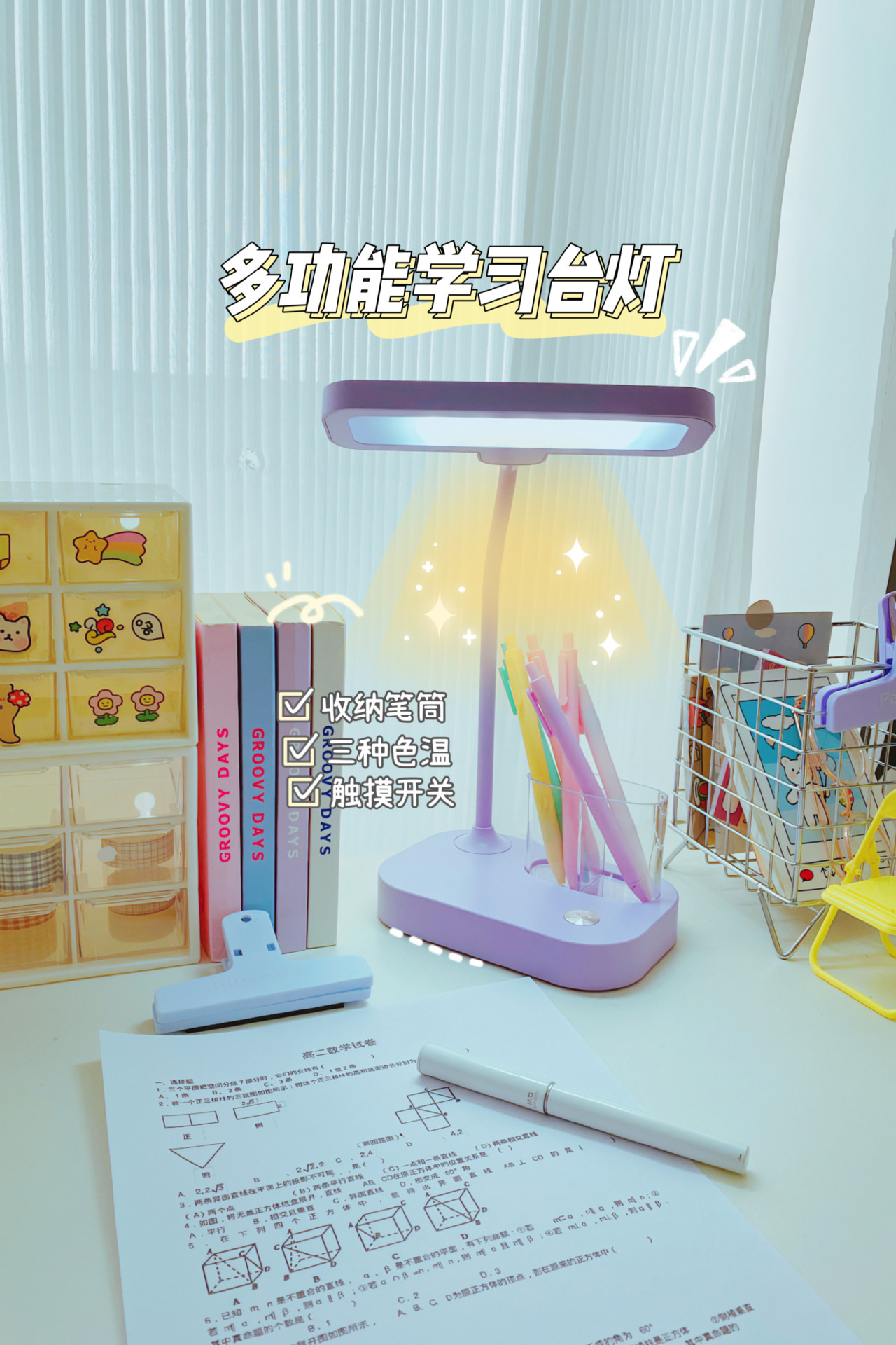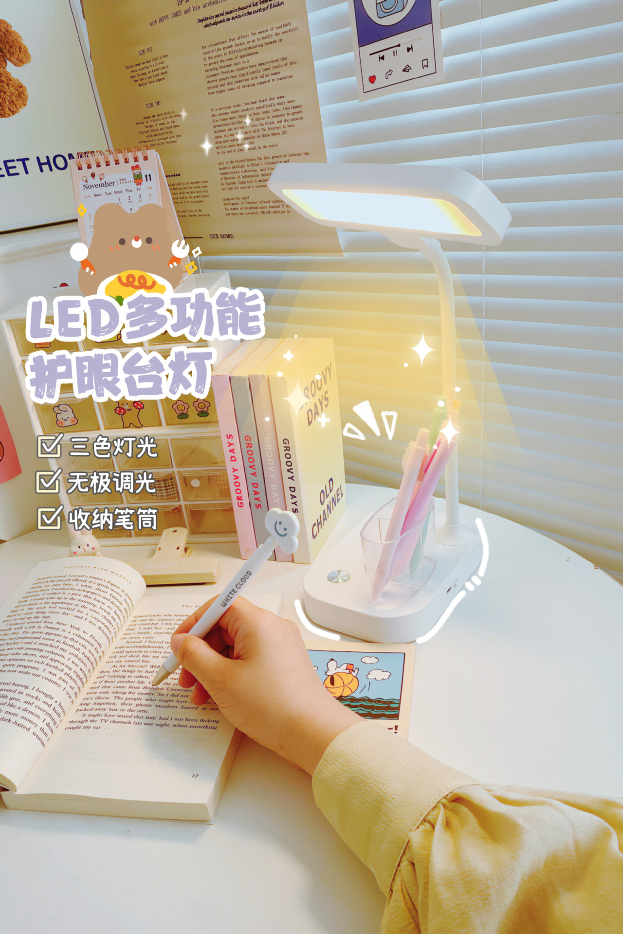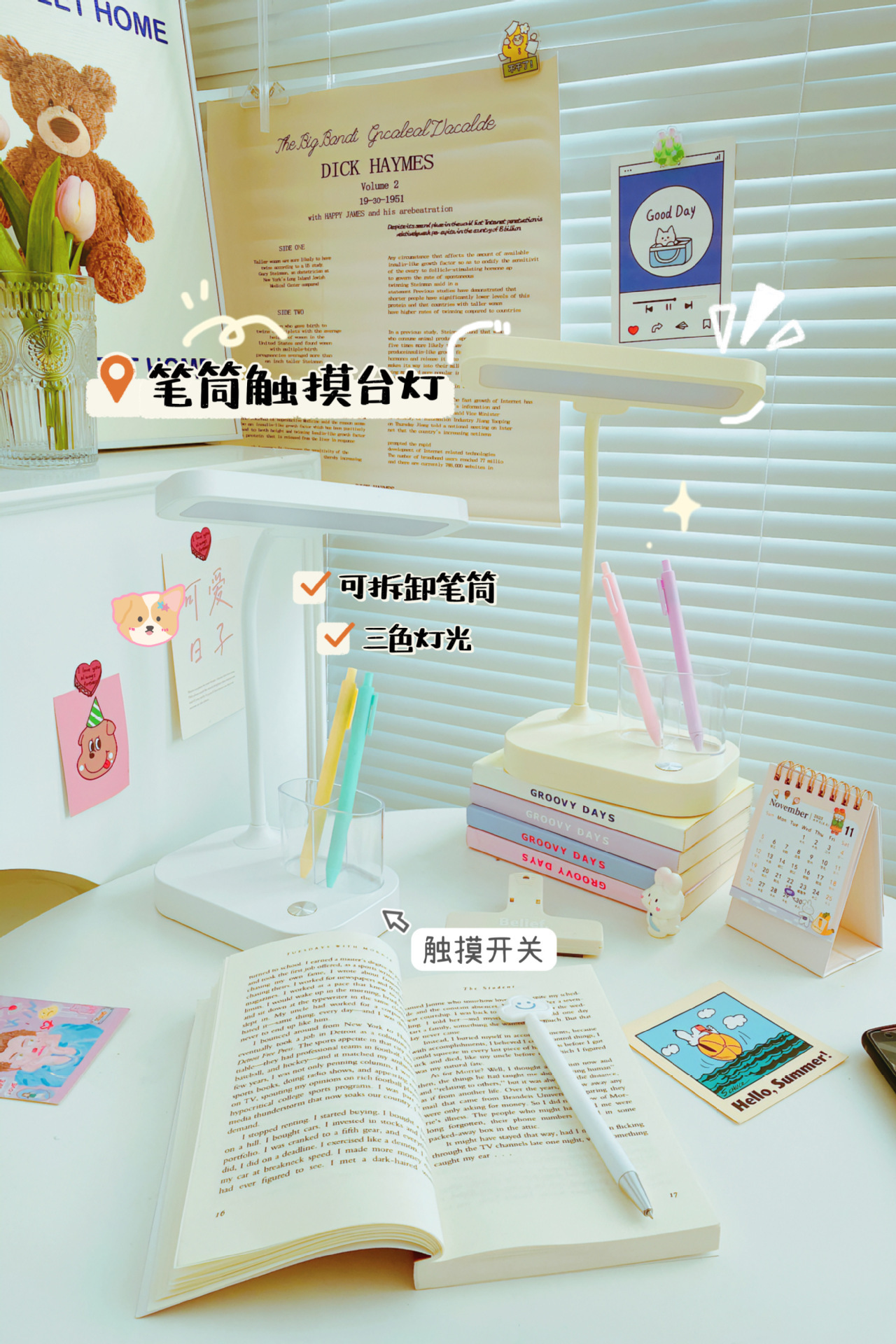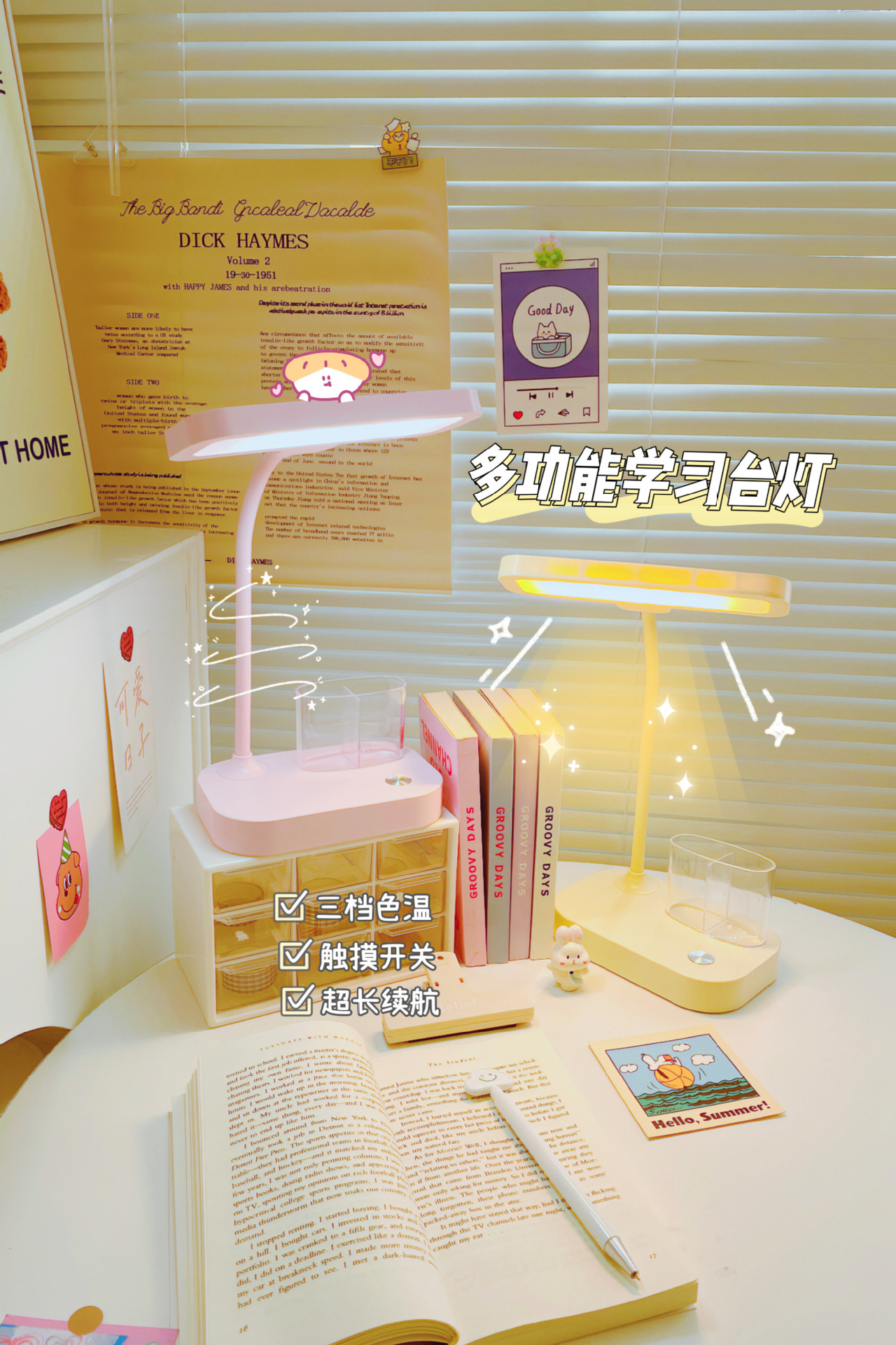 LED触摸调光笔筒台灯 学生书桌写字台灯 简约USB充电台式小夜灯