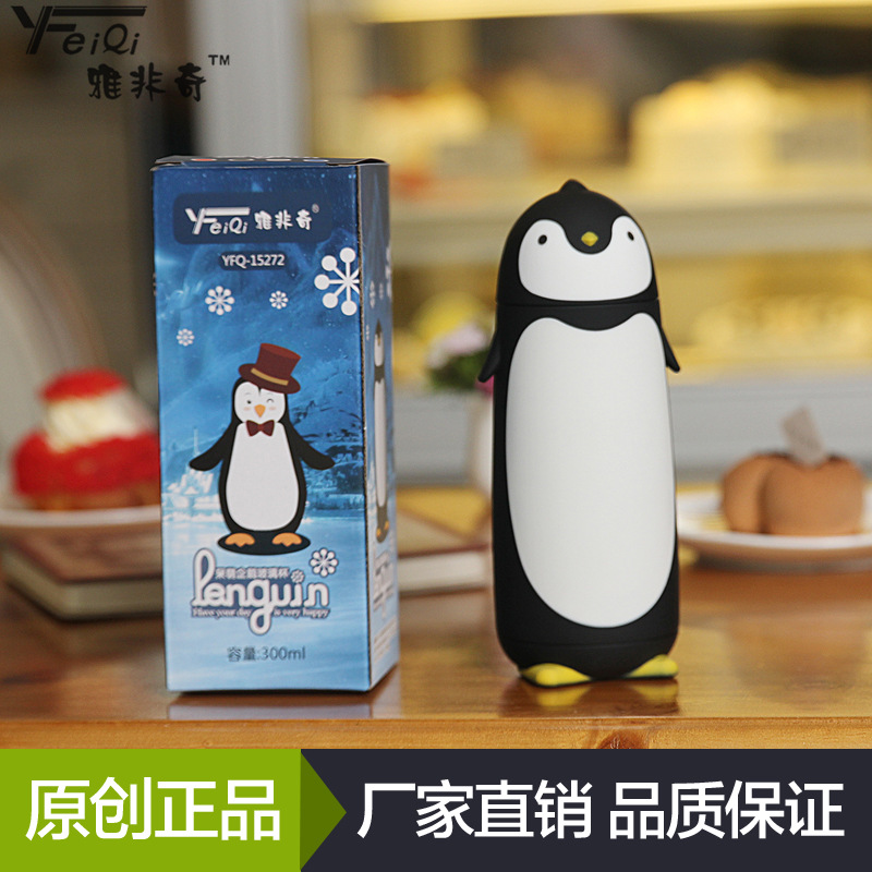 外贸跨境企鹅杯玻璃杯 双层时尚水杯 创意卡通杯子可爱动物礼品