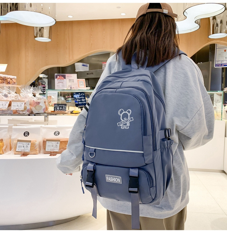 双肩包拼接时尚潮流背包中学大学生双肩包大容量时尚工装风背包