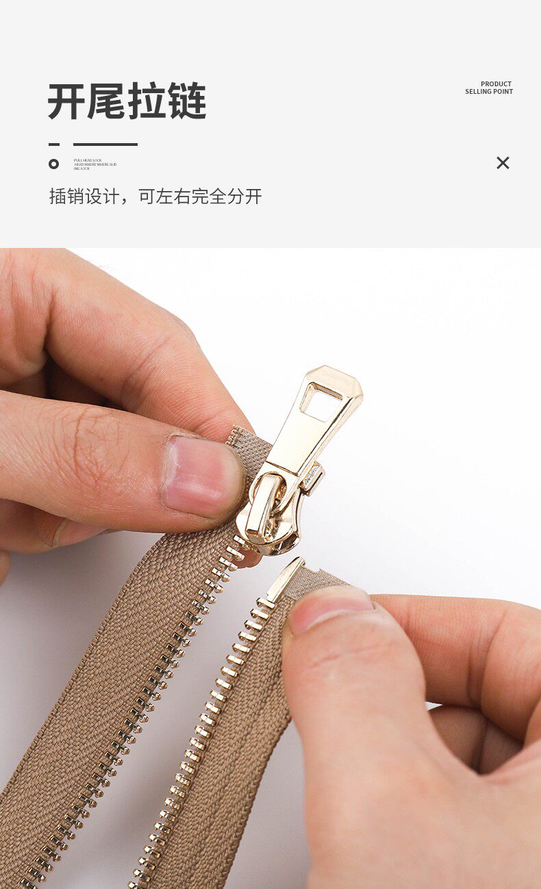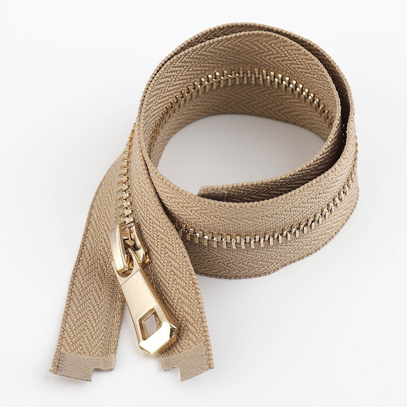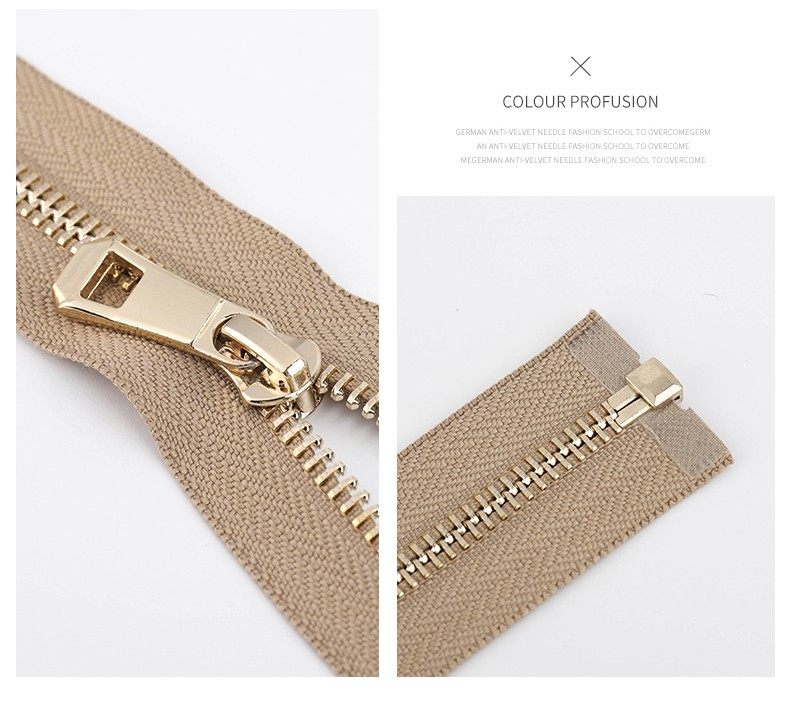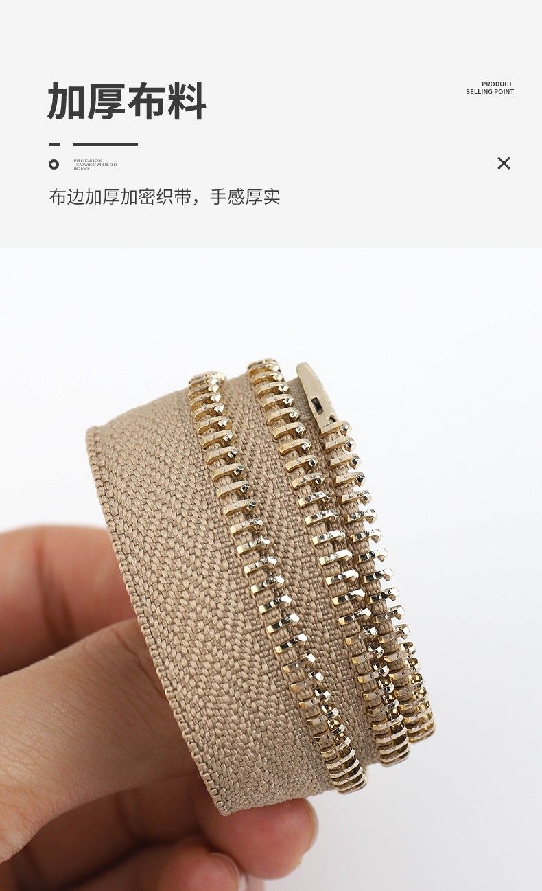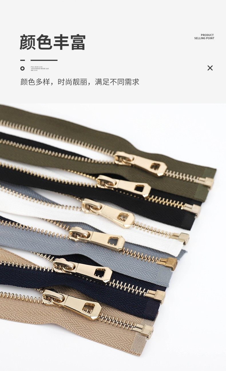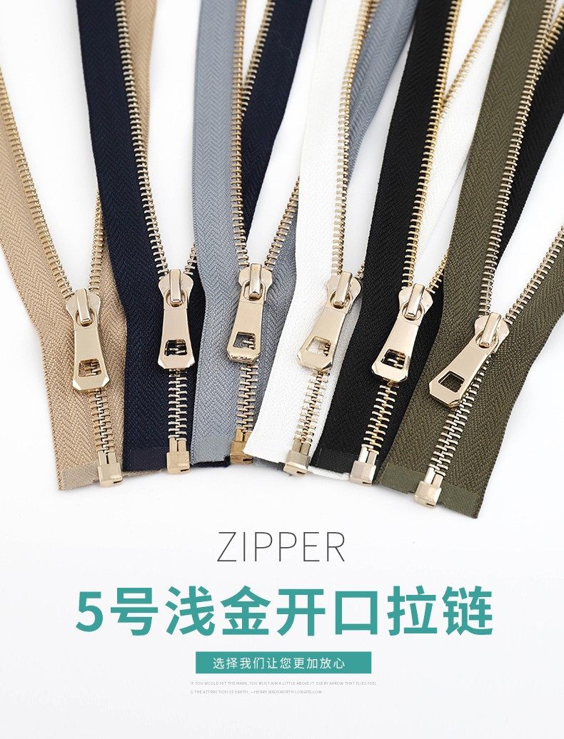 批发5号纯铜金属拉链儿童羽绒服装风衣 女士开衫浅金色拉锁头门襟