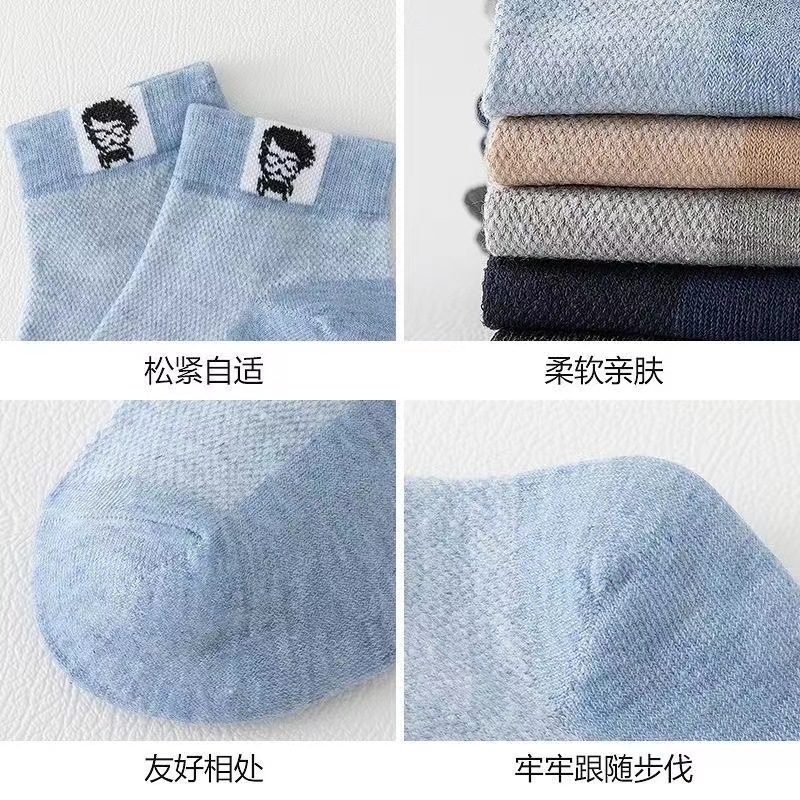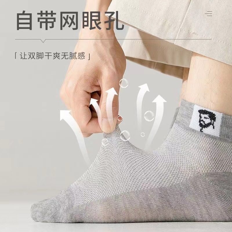 批发船袜纯棉短筒袜子男士夏款透气网眼防臭运动吸汗薄款