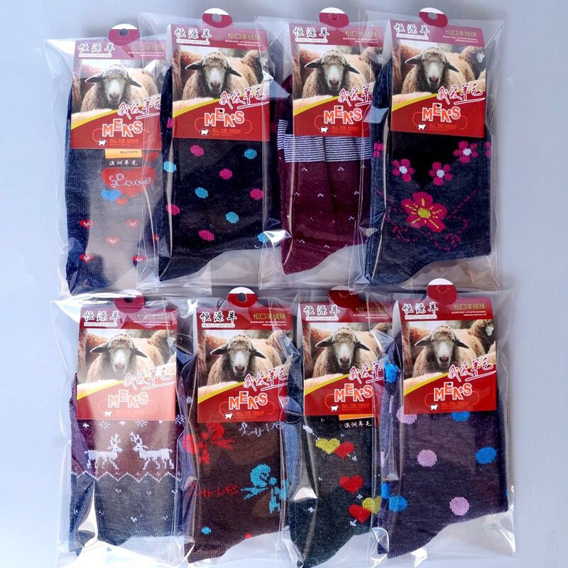 源头厂家批发男士秋冬款商务袜中筒保暖袜子运动袜拼色羊毛棉袜子