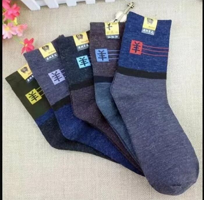 源头厂家批发男士秋冬款商务袜中筒保暖袜子运动袜拼色羊毛棉袜子