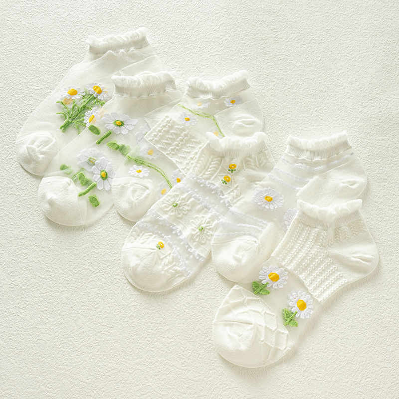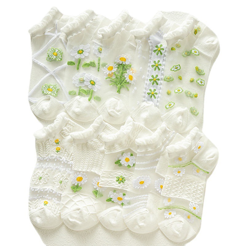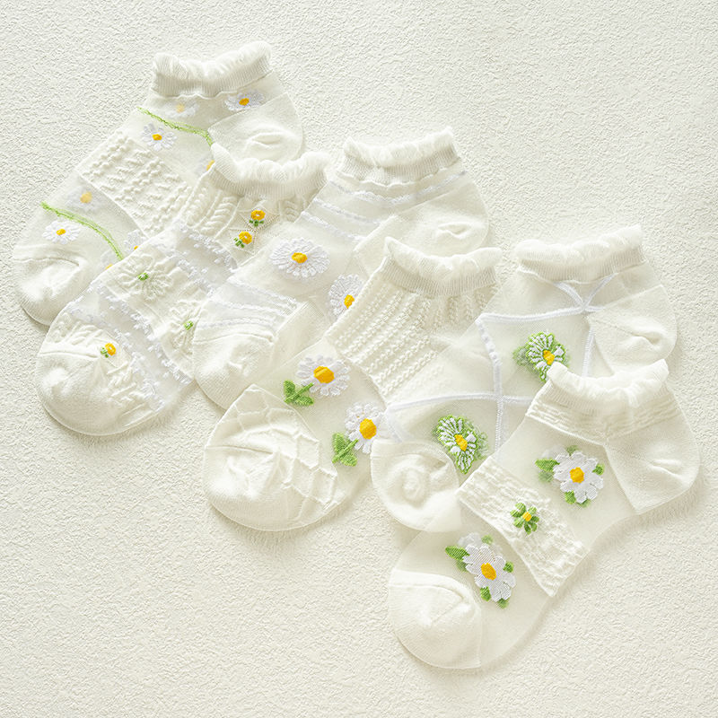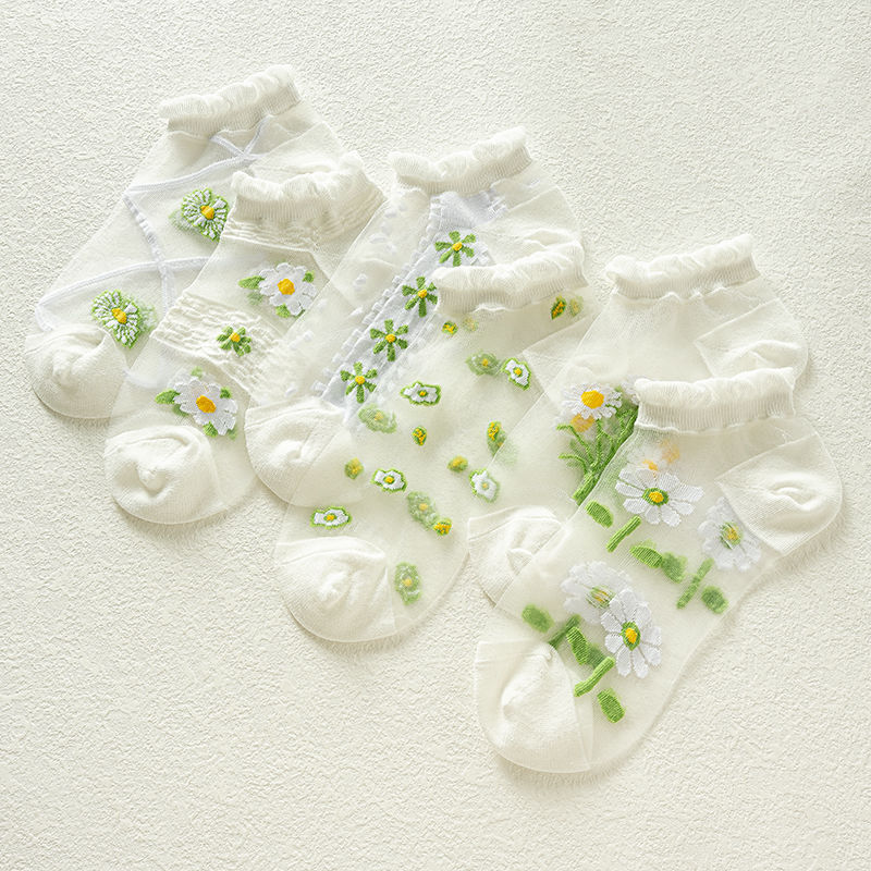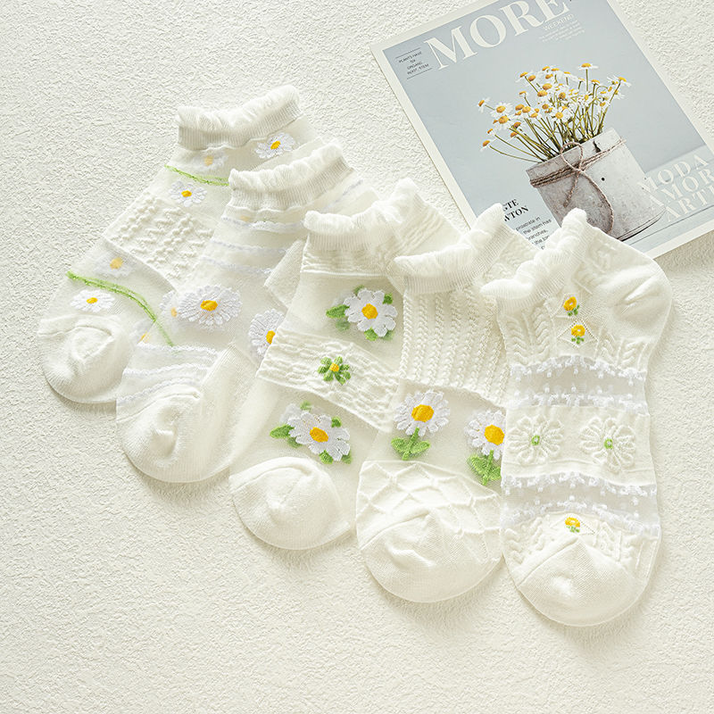 袜子女夏季薄款短袜女士花边百搭蕾丝花朵袜子日系春夏白色袜子女
