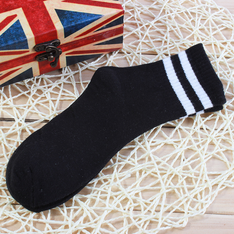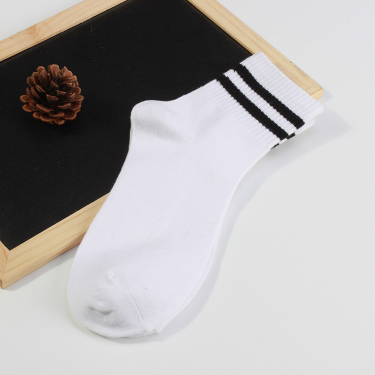 袜子女秋冬季新款棉袜子男女情侣二条杠袜子学生休闲运动中筒袜子