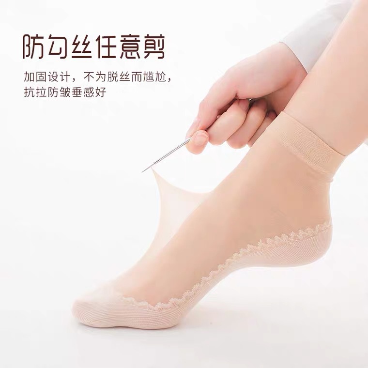 透明水晶丝袜女士袜子夏季薄款防勾丝肉色短袜棉底防滑丝袜女士