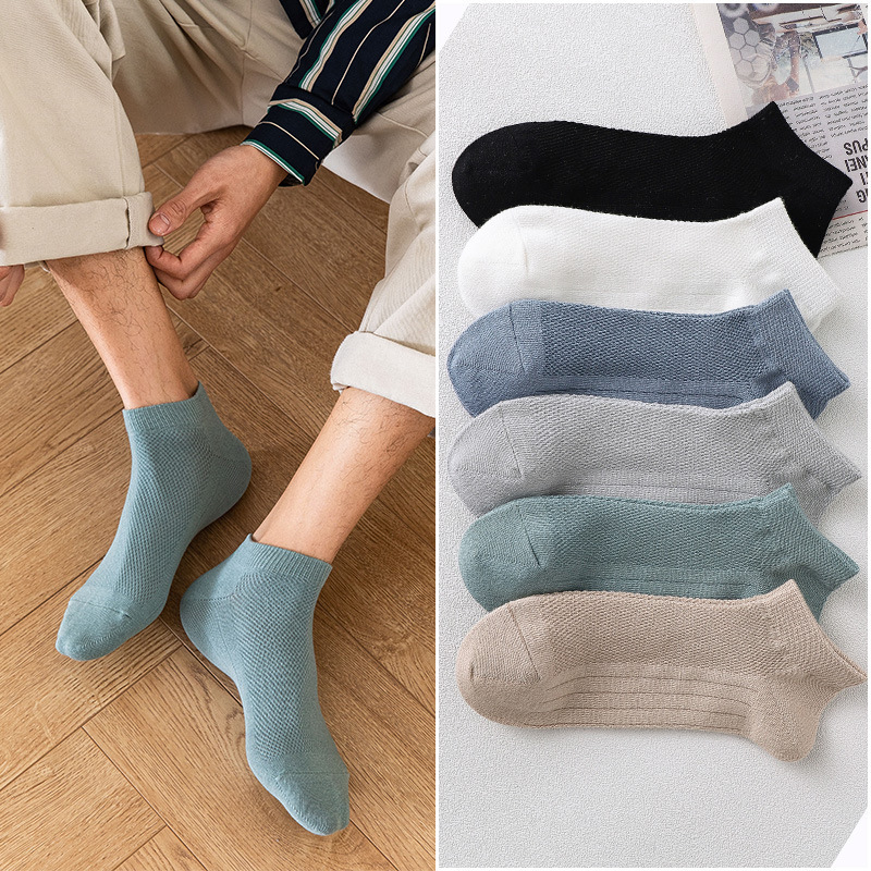 短袜子男士夏季纯色棉袜隐形船袜防臭吸汗休闲运动袜薄款浅口船袜