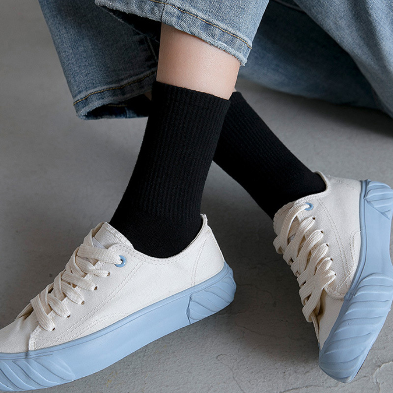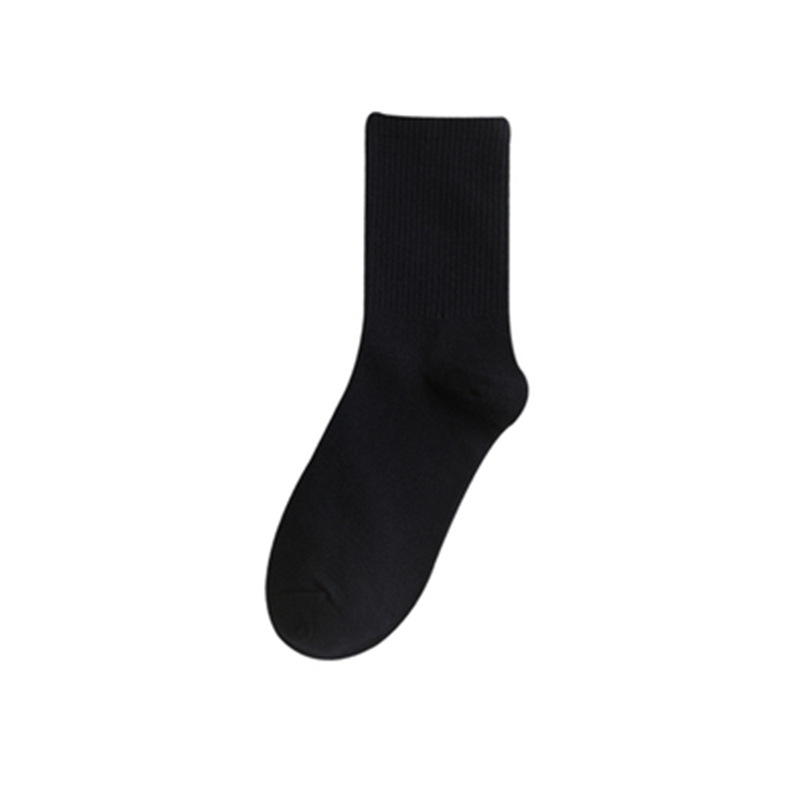 秋冬加厚袜子男士中筒商务休闲袜黑白简约运动篮球袜中筒纯色棉袜