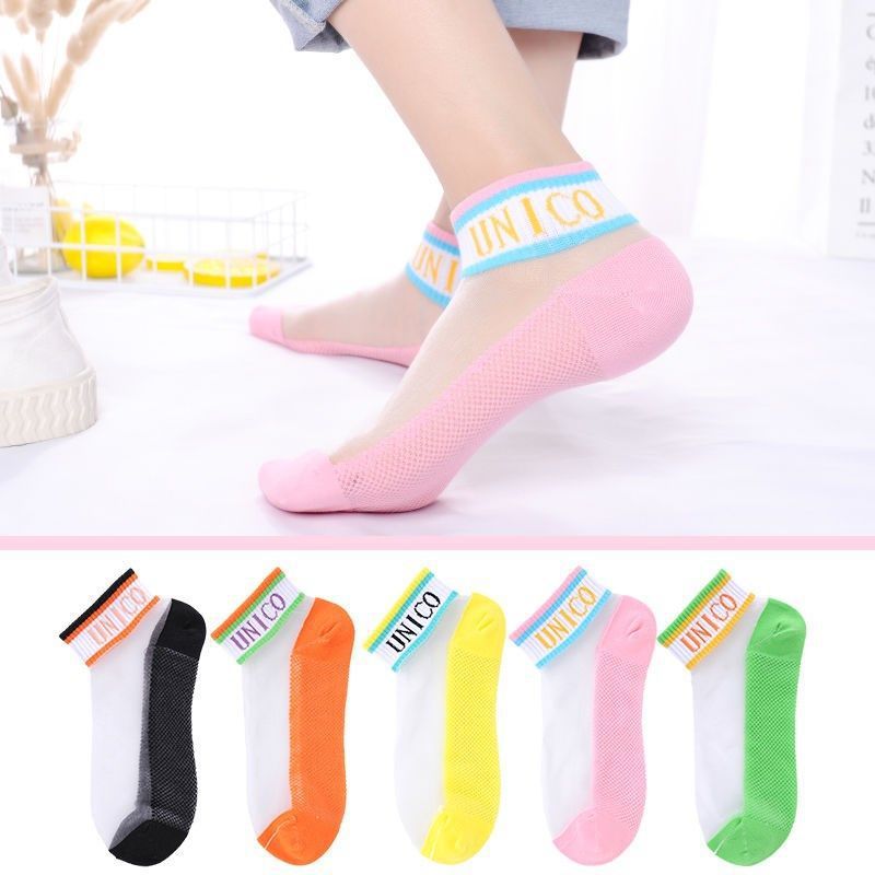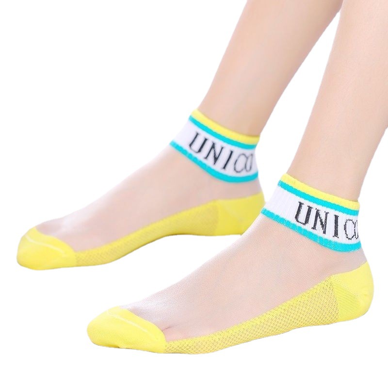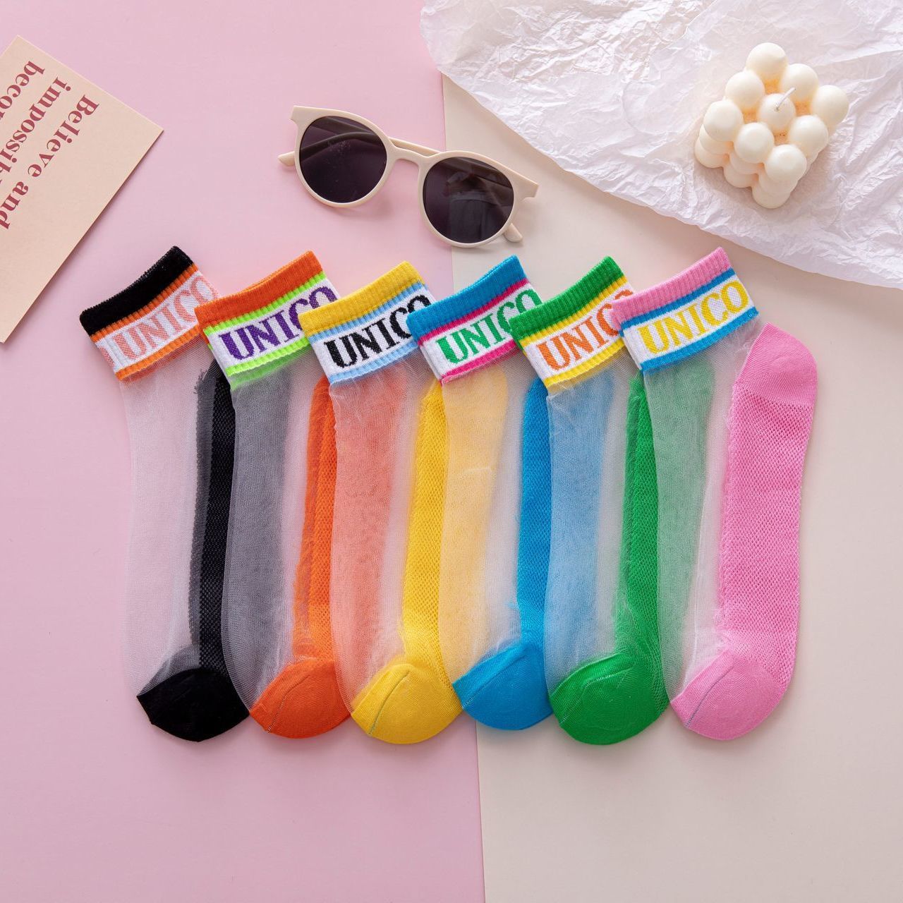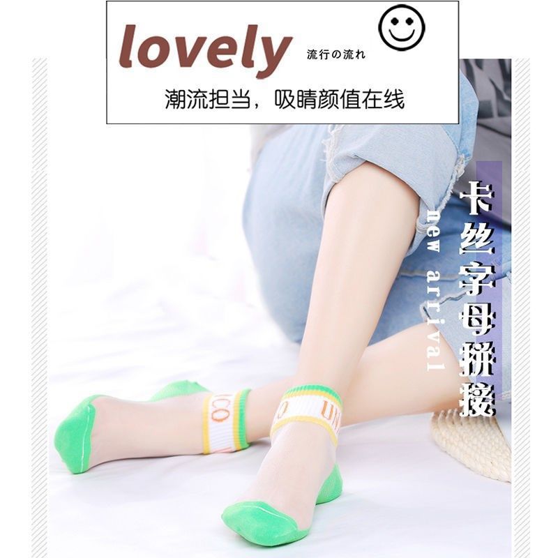 袜子女短袜ins潮棉底玻璃丝水晶丝袜夏季薄款字母船袜女透明丝袜