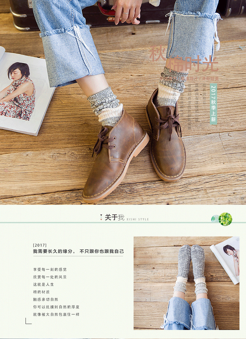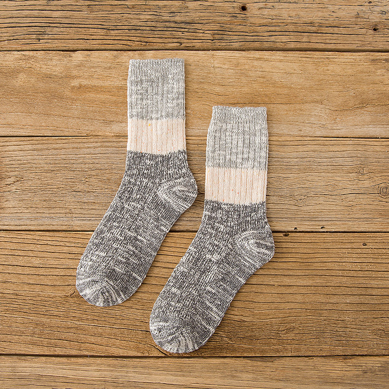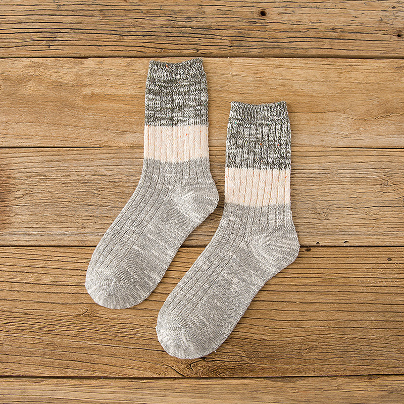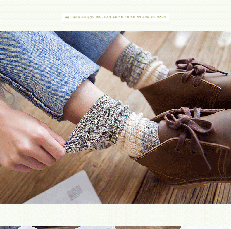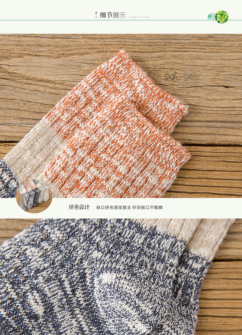 秋冬加厚毛线袜子女士高筒袜复古拼色堆堆袜长筒个性袜子短靴棉袜