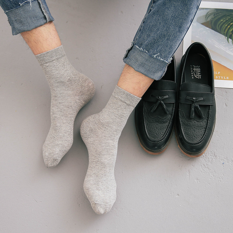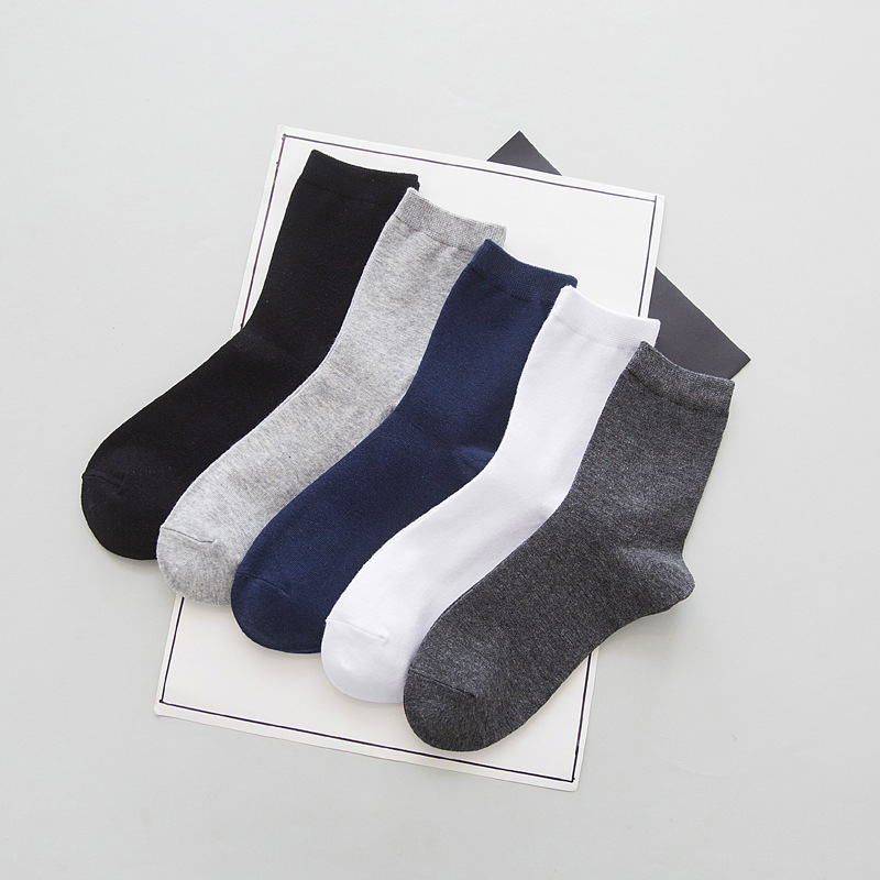 秋冬男士棉袜子中筒商务袜男纯色百搭透气吸汗休闲四季棉袜子男士