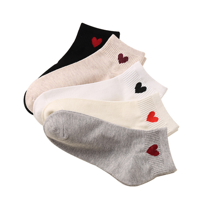 袜子女士船袜春秋新款女士棉袜子休闲爱心短筒运动棉袜子厂家批发