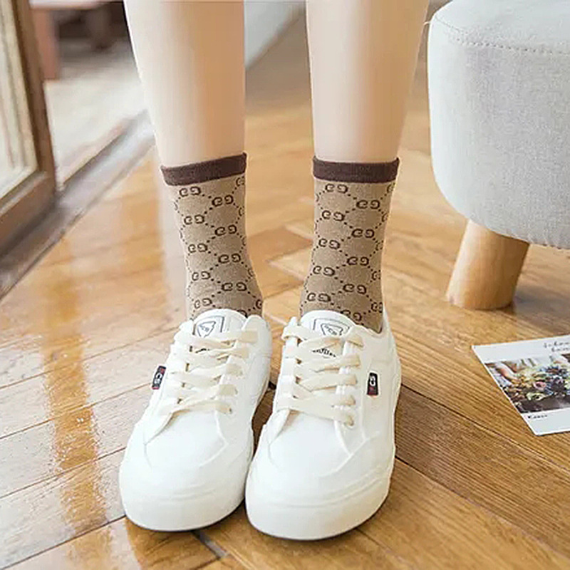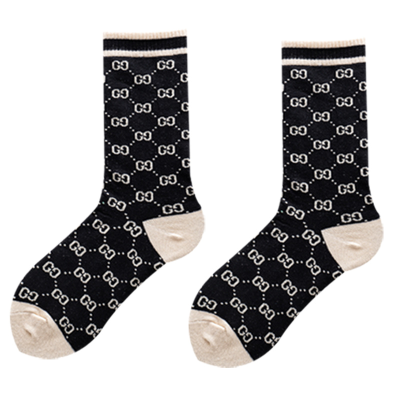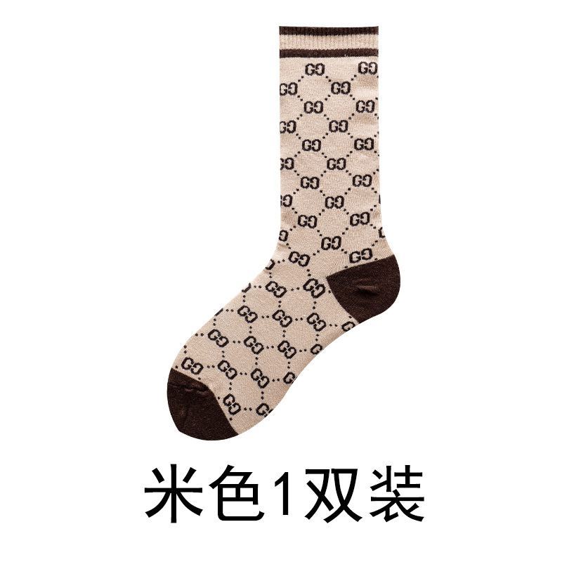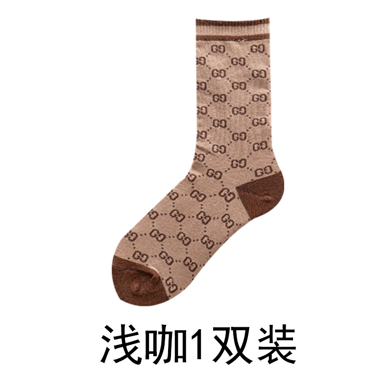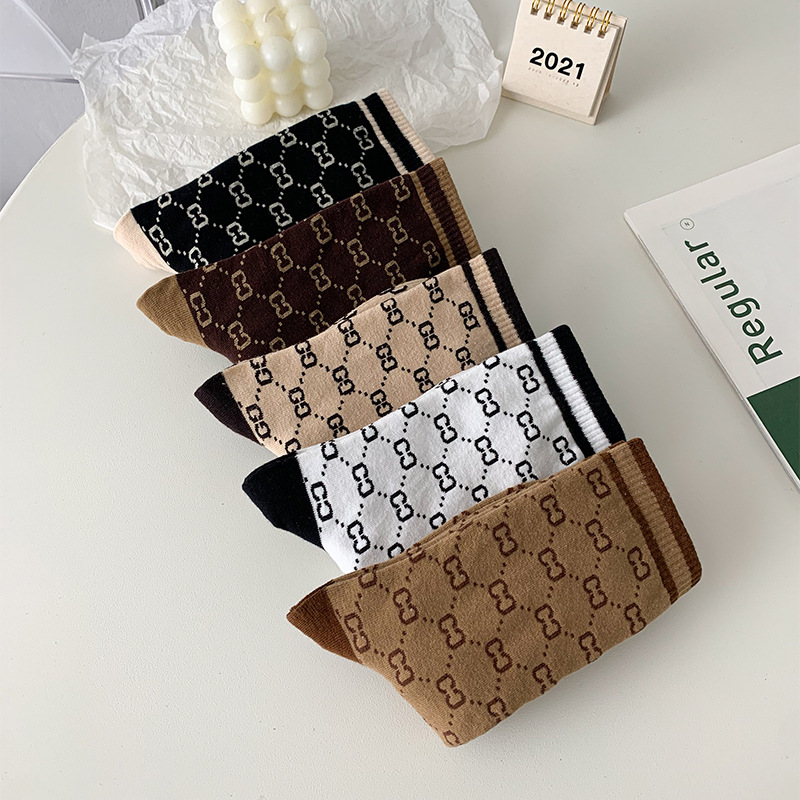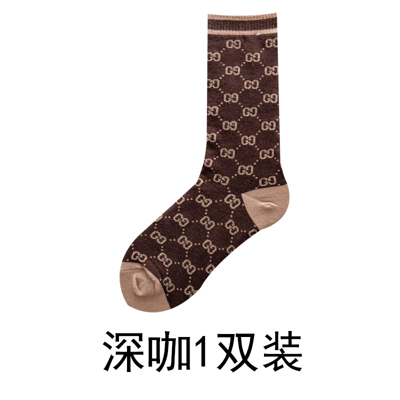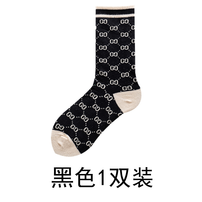 秋冬字母堆堆袜网红中筒袜韩版复古轻奢长袜外穿黑色长筒袜ins潮