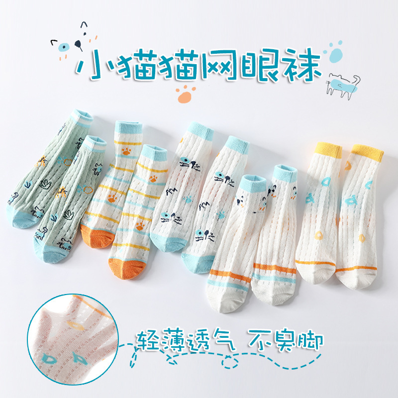 23年新款男女童袜子春夏薄款纯棉网眼中筒袜儿童宝宝棉袜厂家批发