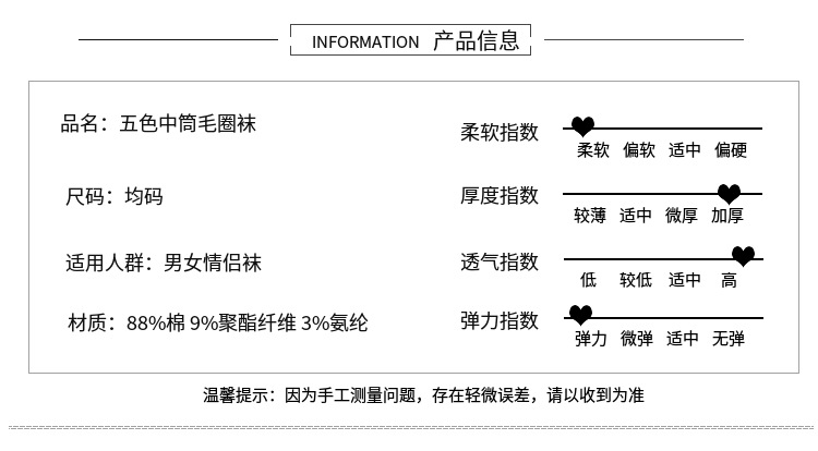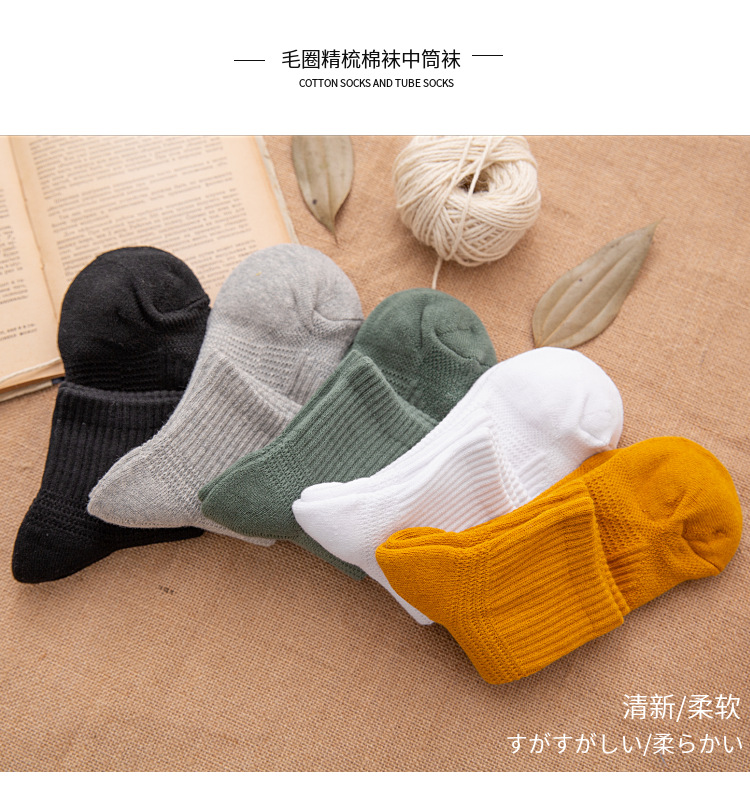 袜子男秋冬加厚毛圈中筒袜男士休闲运动精梳棉袜男女长袜保暖袜子