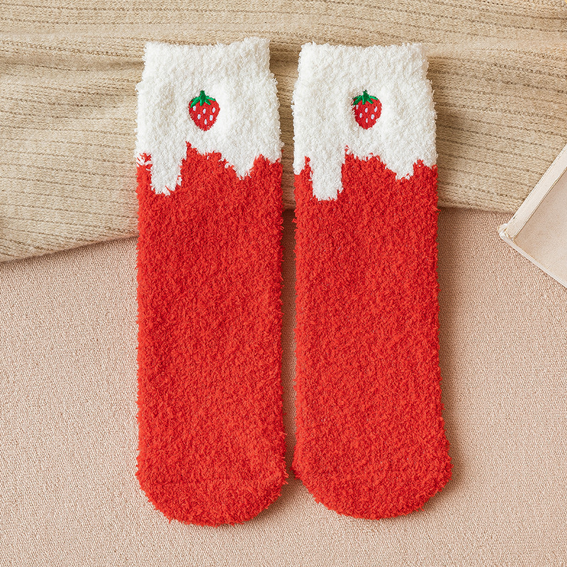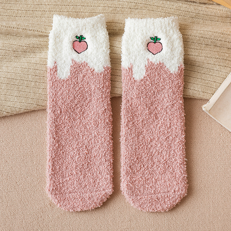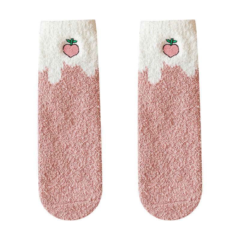 毛绒袜子女珊瑚绒秋冬加厚保暖长筒袜地板袜可爱居家睡眠女袜批发
