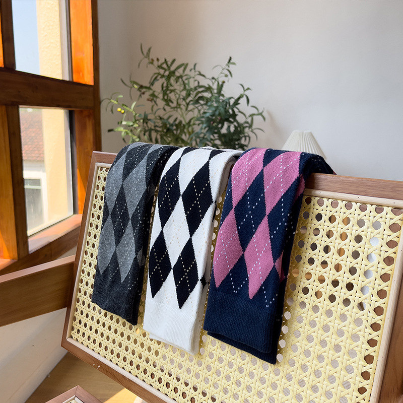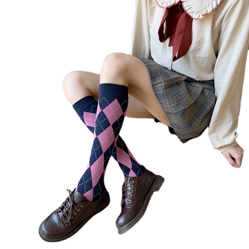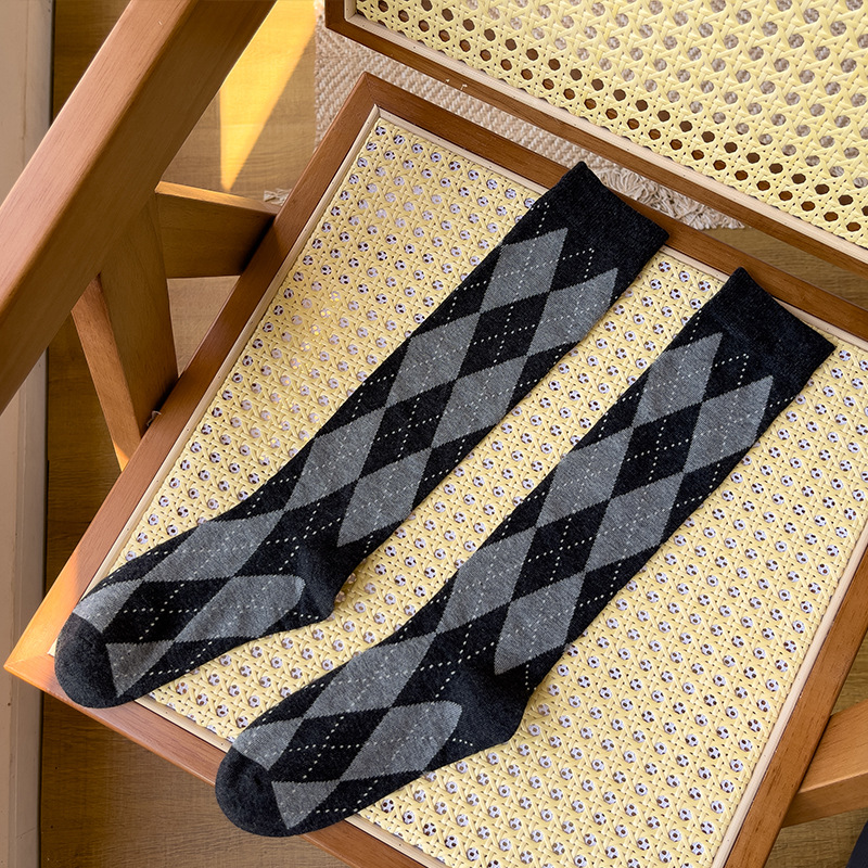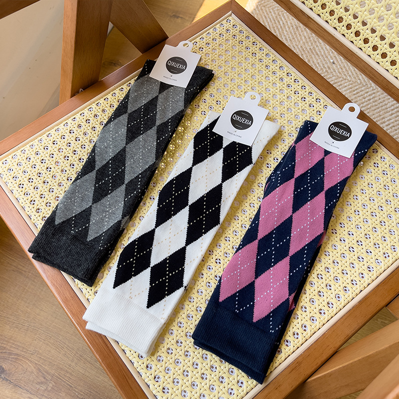 春秋新款小腿袜子女 日系jk袜子女ins潮复古英伦格子高筒袜及膝袜