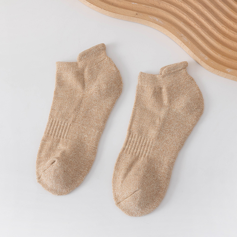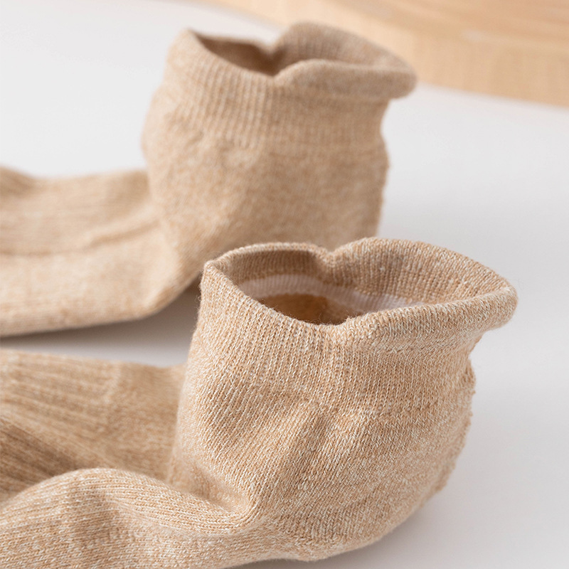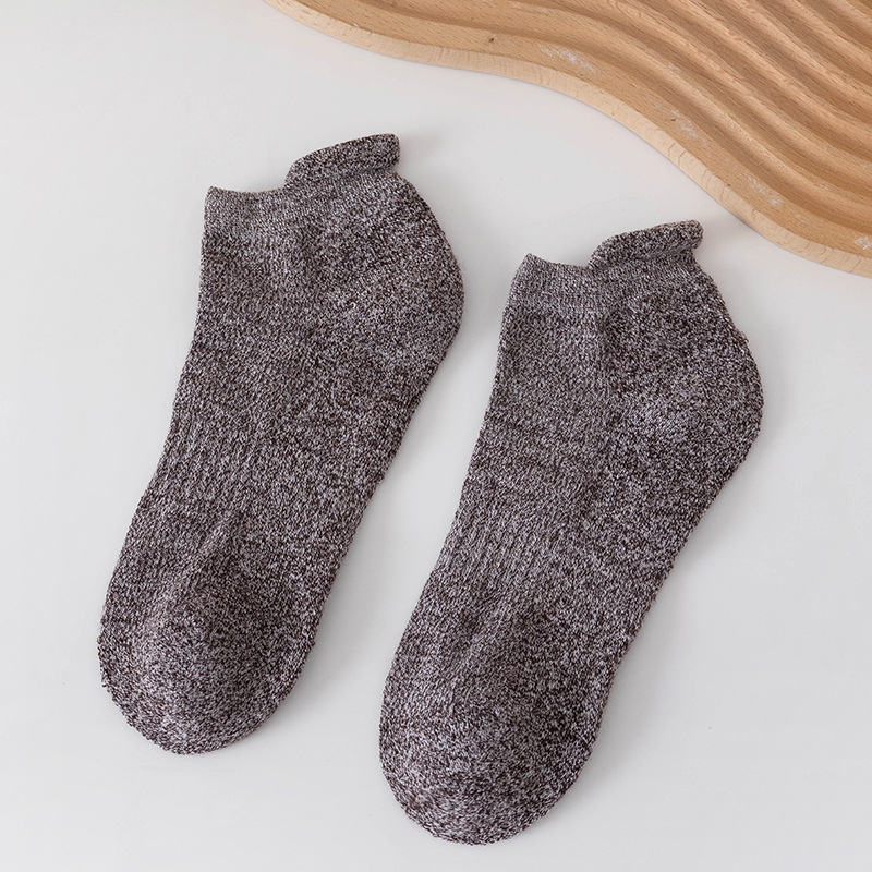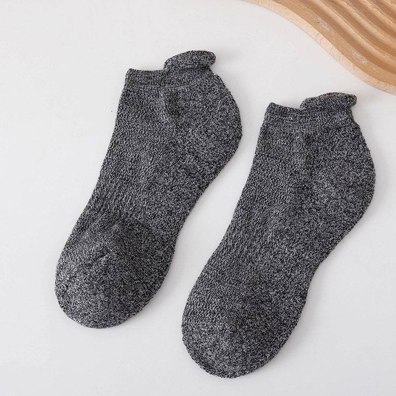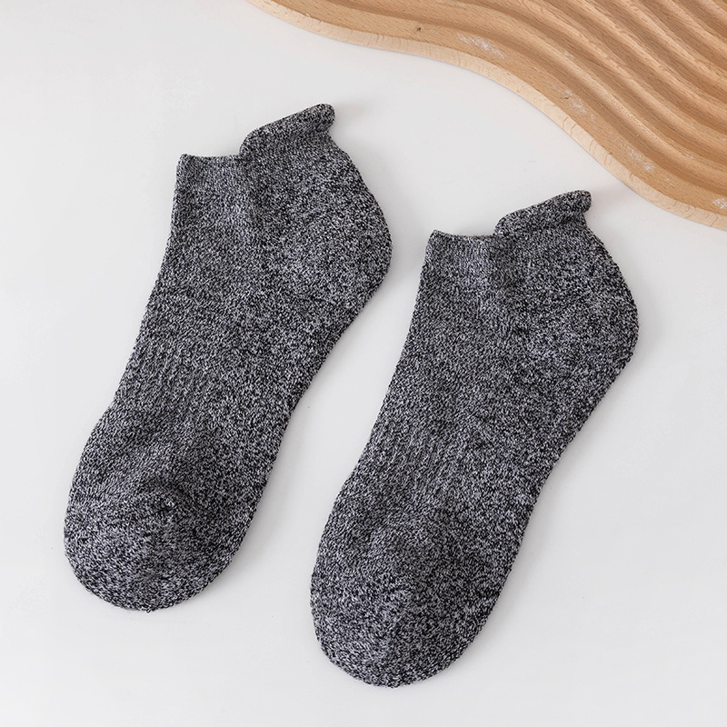 男士纯色提耳后跟船袜 运动风短袜短筒棉袜不掉跟毛圈袜低帮吸汗