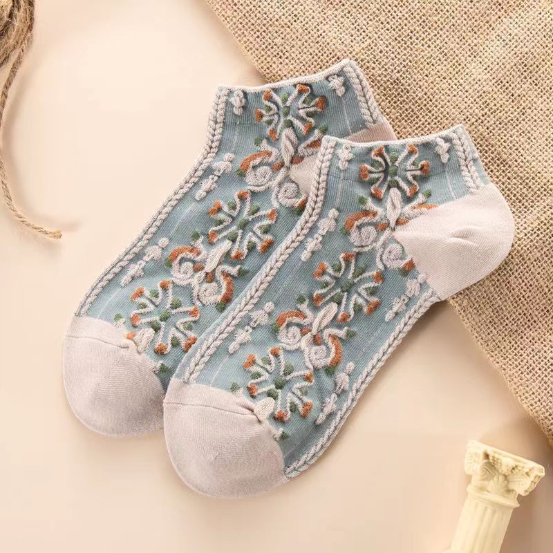 复古立体浮雕袜子女中筒森系短袜网红春夏新款船袜女短款浅口袜女